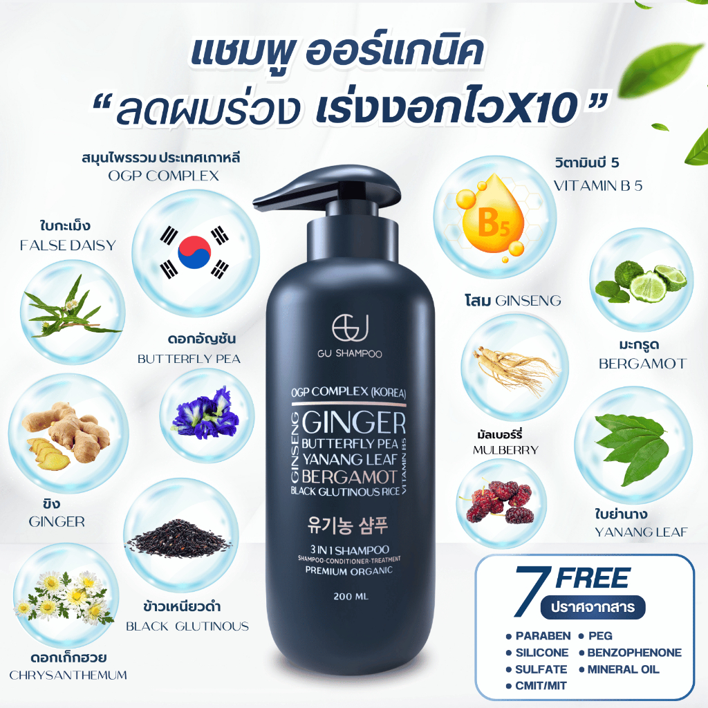 แชมพูจียู 1 ขวด 200 ml + ทรีทเม้นท์จียู 1 กระปุก |แก้ผมร่วง ฟื้นฟูผมแห้งเสีย