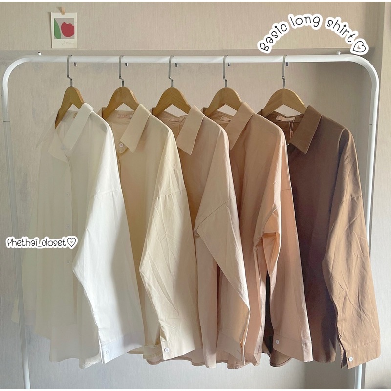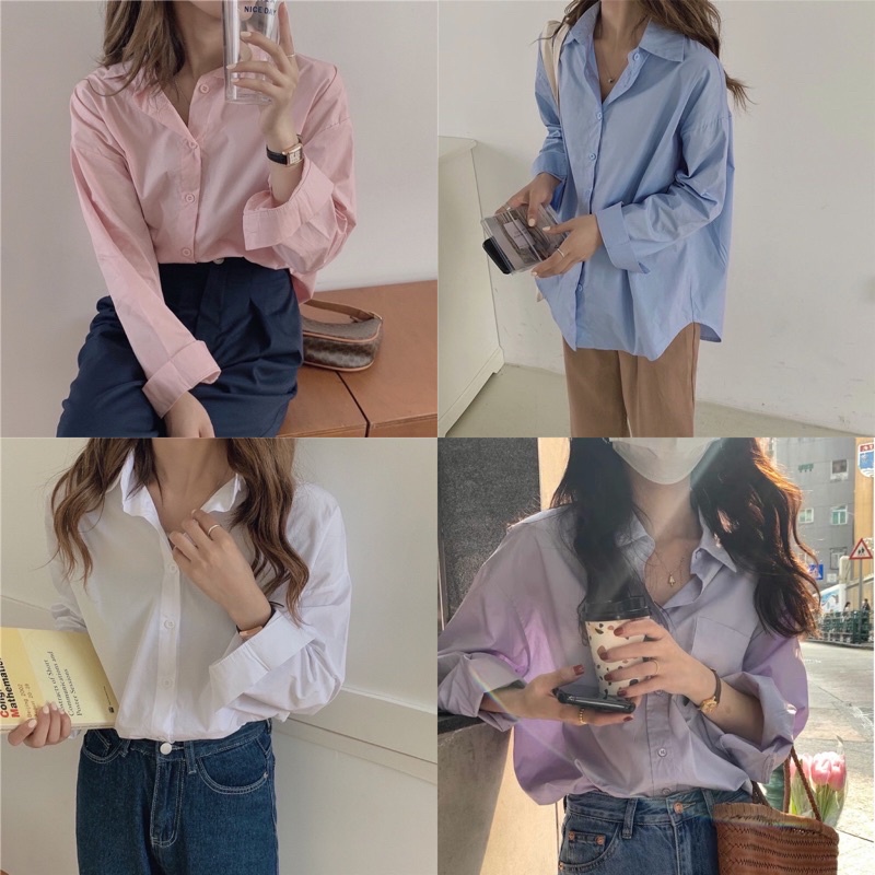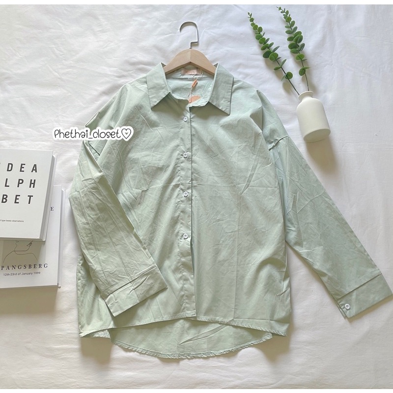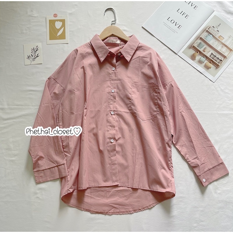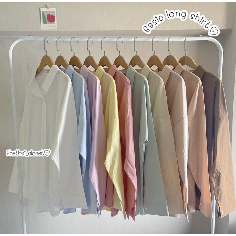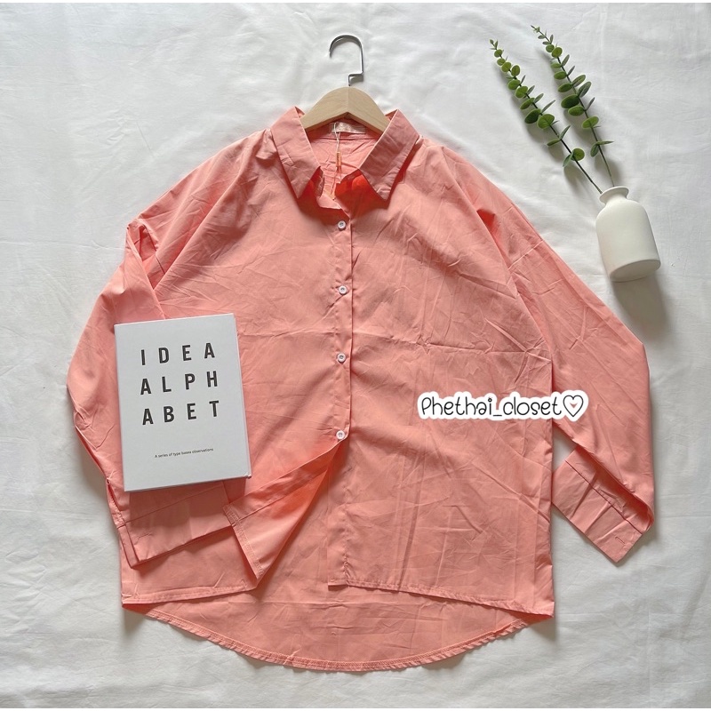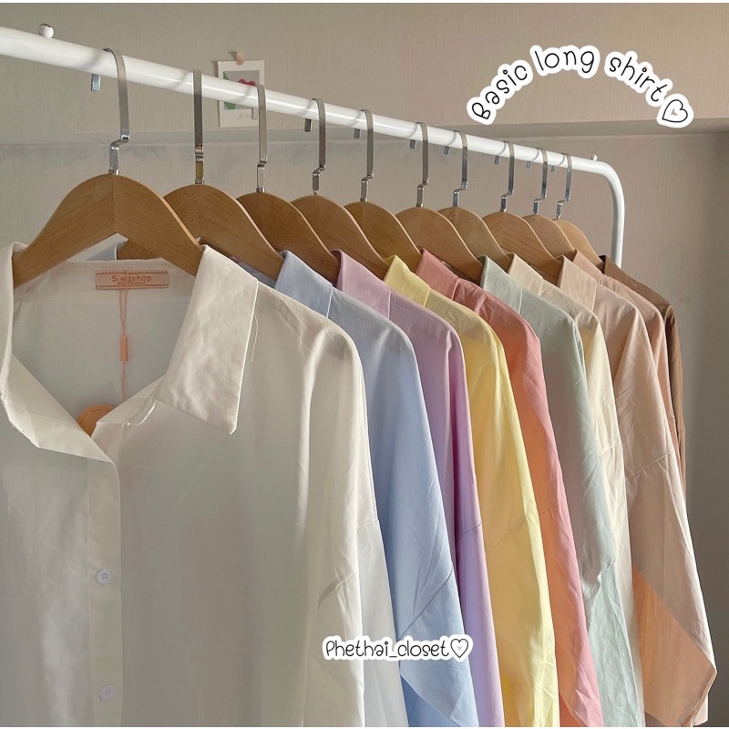 ♡Basic long shirt♡ เสื้อเชิ้ตสีพื้น#ใส่คลุมได้👉มีสีมาเพิ่มนะคะรุ่นขายดี