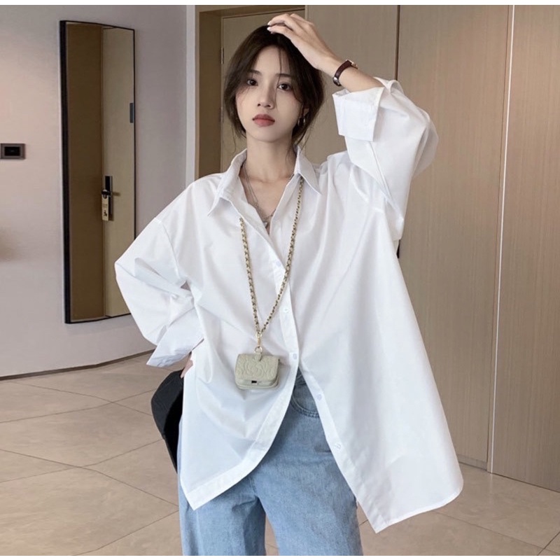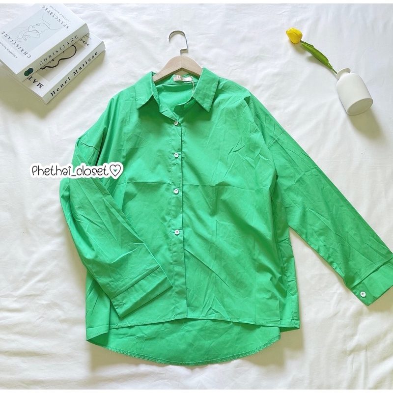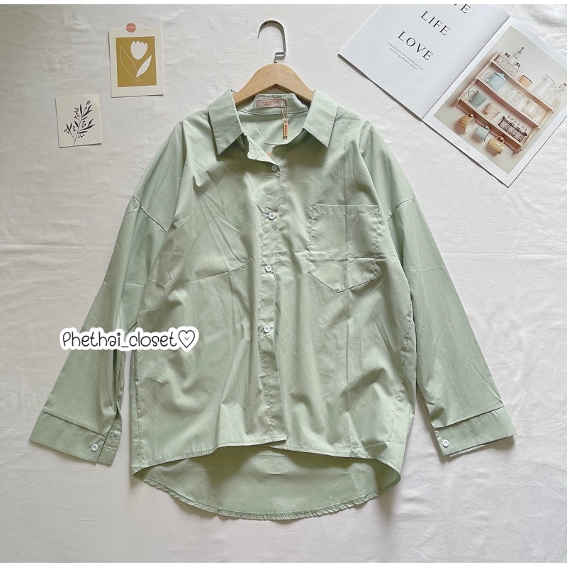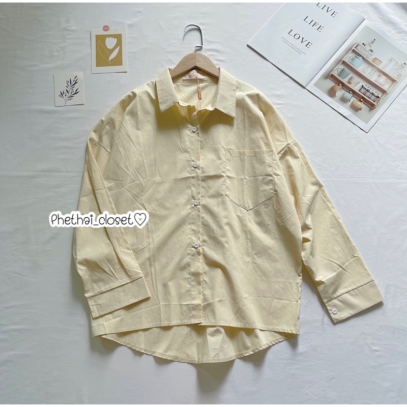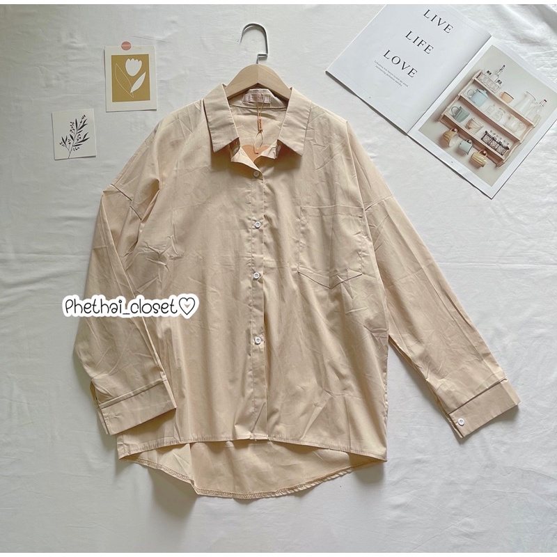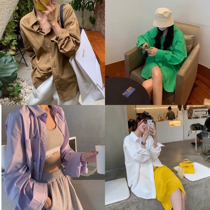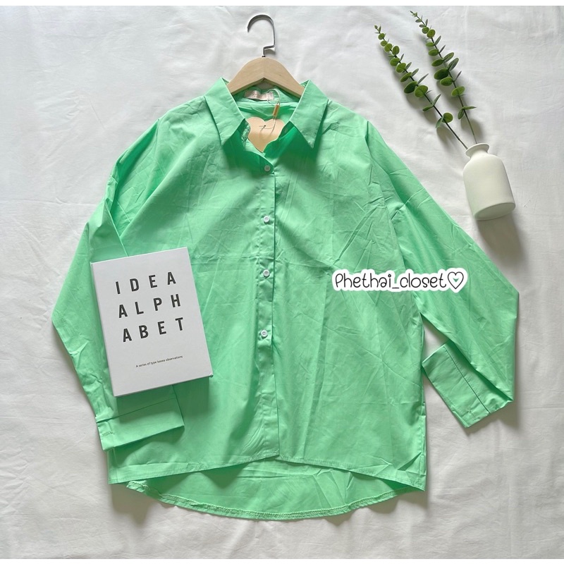 ♡Basic long shirt♡ เสื้อเชิ้ตสีพื้น#ใส่คลุมได้👉มีสีมาเพิ่มนะคะรุ่นขายดี