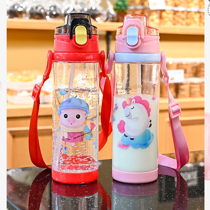 ยูนิคอร์น กระติกน้ำหลอดเด้งพร้อมสาย ขวดน้ำเด็ก มีสายสะพาย ขนาด 700ml พร้อมส่ง