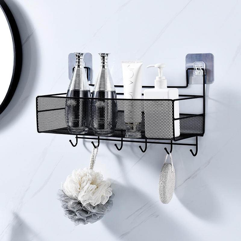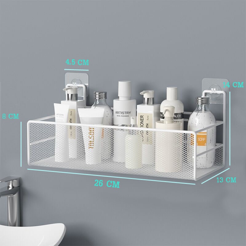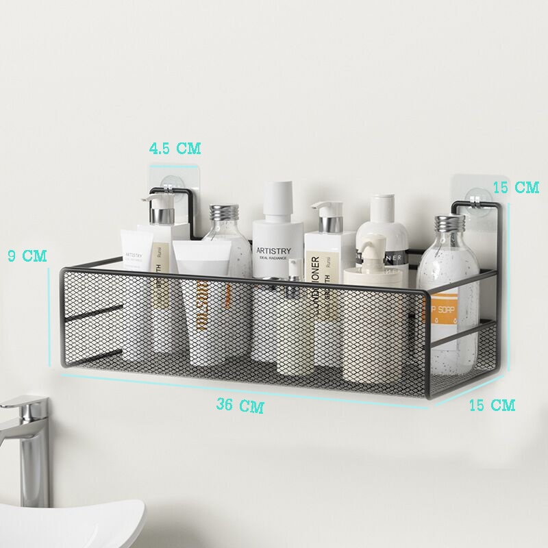 R66 ตะแกรงวางของติดผนัง ที่วางของติดผนัง สีขาว สีดำ แบบไม่ต้องเจาะ มีกาวแถม