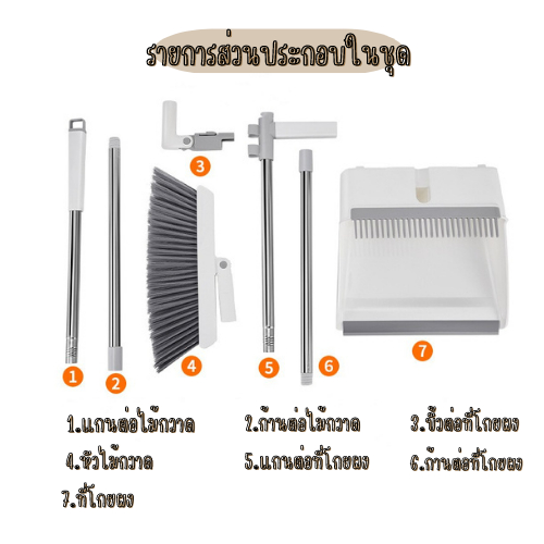 R66 ไม้กวาด ชุดไม้กวาดพร้อมที่โกยผง ที่โกยผง ปรับได้ 180 องศา พับเก็บง่าย