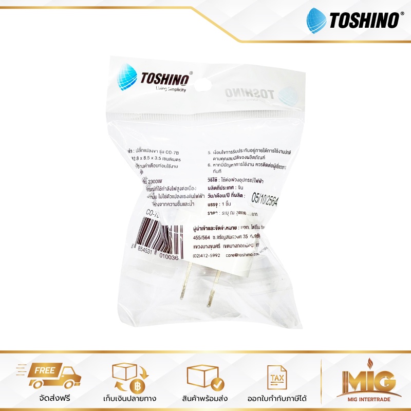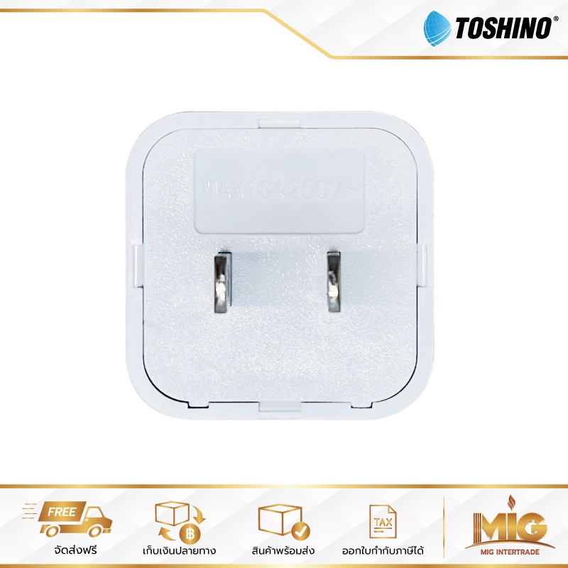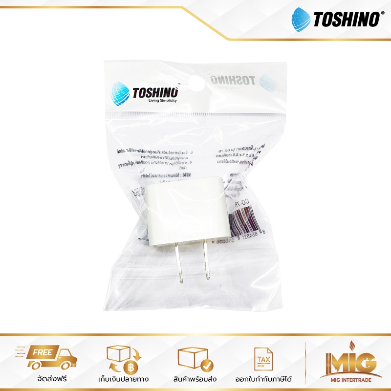Toshino ปลั๊กอะแดปเตอร์ 1 ช่อง รุ่น CO-7B ปลั๊กอย่างดี ปลั๊กแปลงจาก 3 ขา เป็น 2 ขาแบน ประกัน 1 ปี ใช้กับขาปลั๊กจีนได้