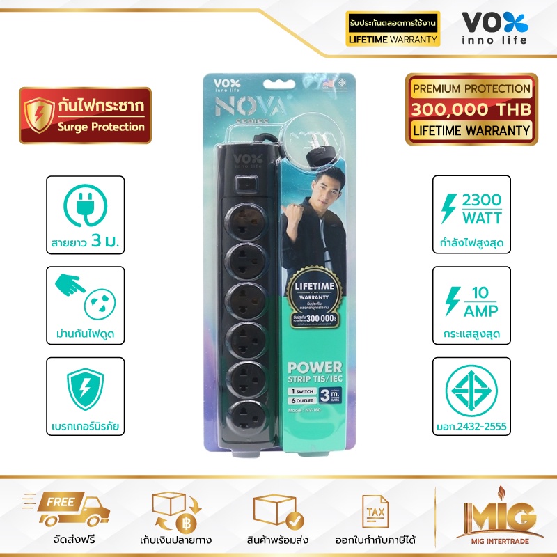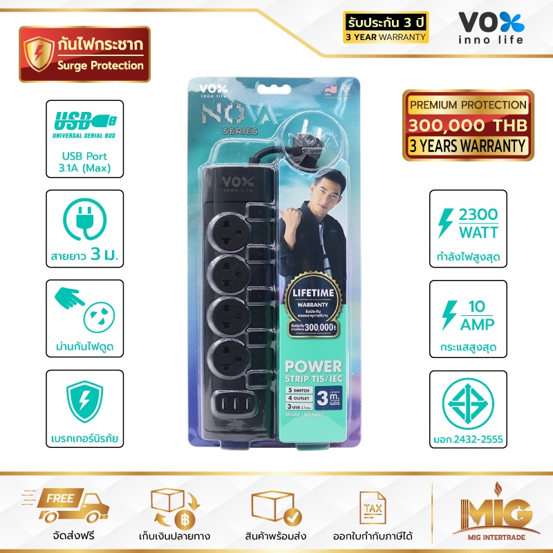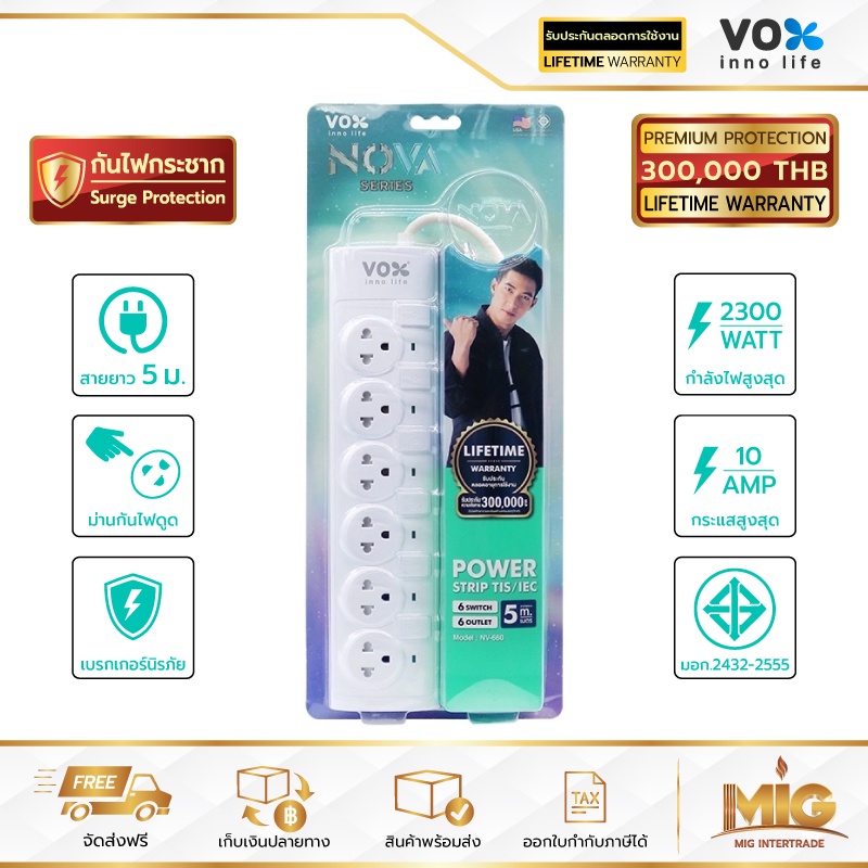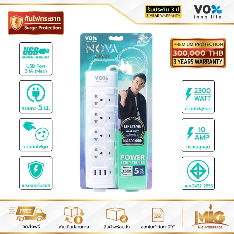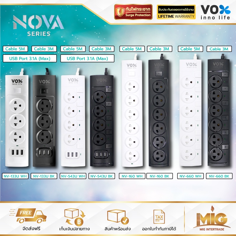 VOX NOVA รางปลั๊กไฟมาตรฐาน มอก. ปลั๊กไฟต่อพ่วง ปลั๊กไฟอย่างดี ปลั๊กไฟขยายจำนวนช่อง เพิ่มช่องปลั๊ก 2300W ประกันตลอดชีพ