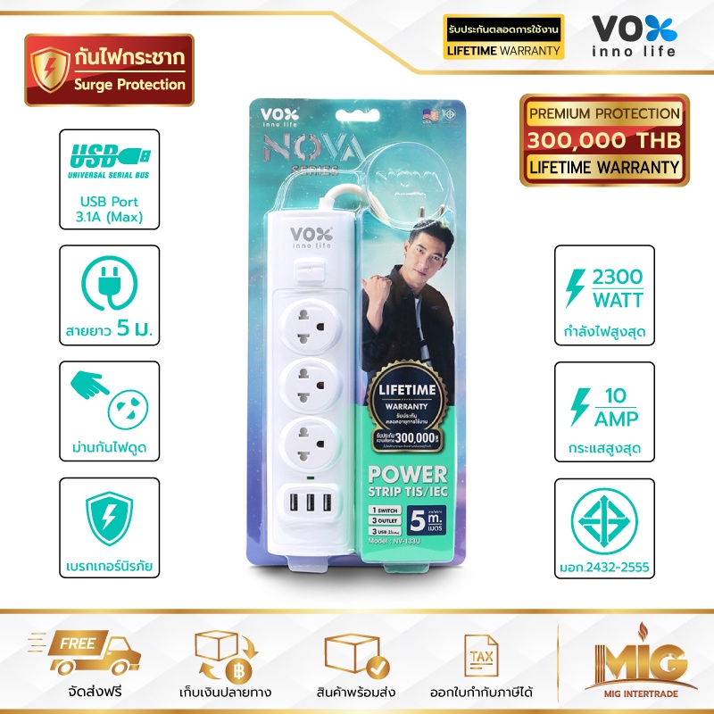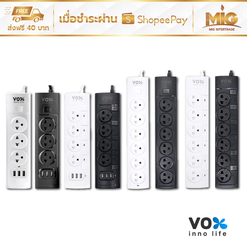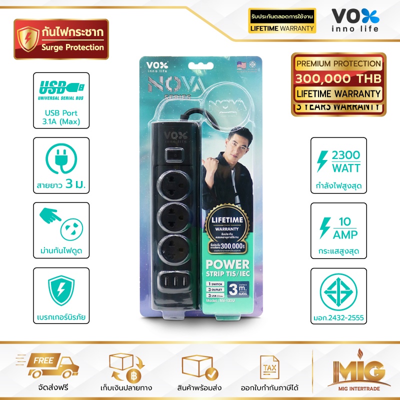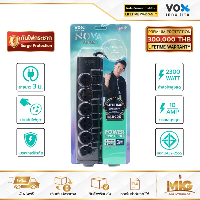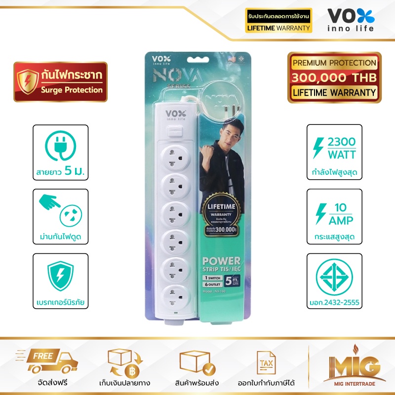 VOX NOVA รางปลั๊กไฟมาตรฐาน มอก. ปลั๊กไฟต่อพ่วง ปลั๊กไฟอย่างดี ปลั๊กไฟขยายจำนวนช่อง เพิ่มช่องปลั๊ก 2300W ประกันตลอดชีพ