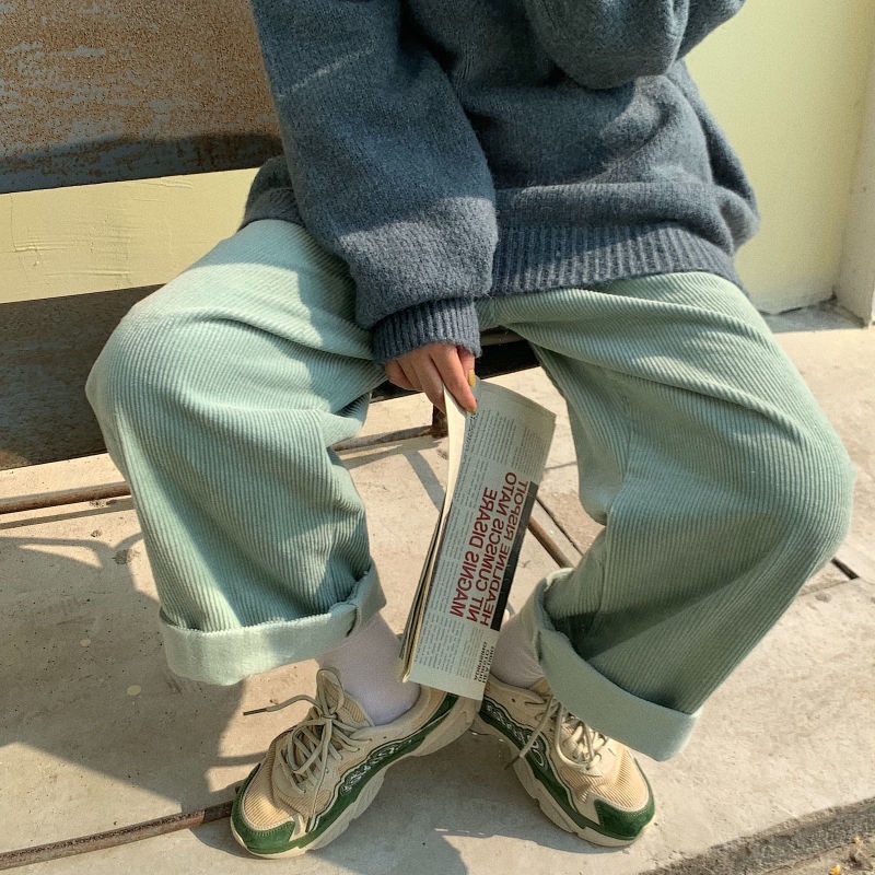 แฟชั่นผู้หญิงกางเกงผ้าลูกฟูกเอวสูงขากว้างรูปแบบใหม่ในปี 2021 กางเกงขายาวผู้หญิงเสื้อผ้าแฟชั่นผ้าลูกฟูกผู้หญิง