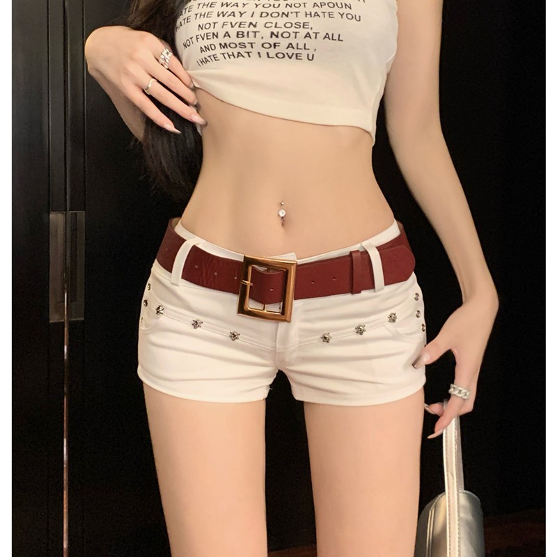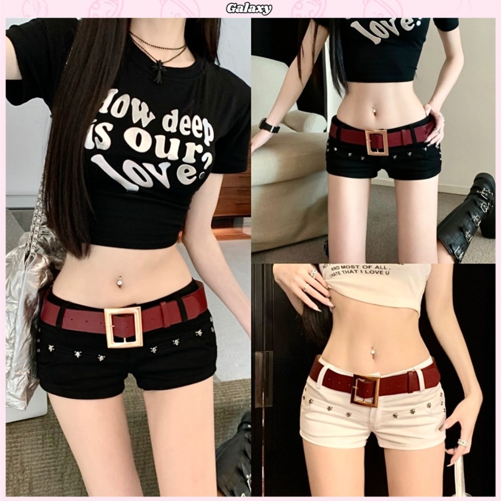 กางเกงยีนขาสั้น กางเกงขาสั้นผู้หญิง เเถมเข็มขัด แนววินเทจ ผ้านิ่ม สาวฮอตต้องมี #010102
