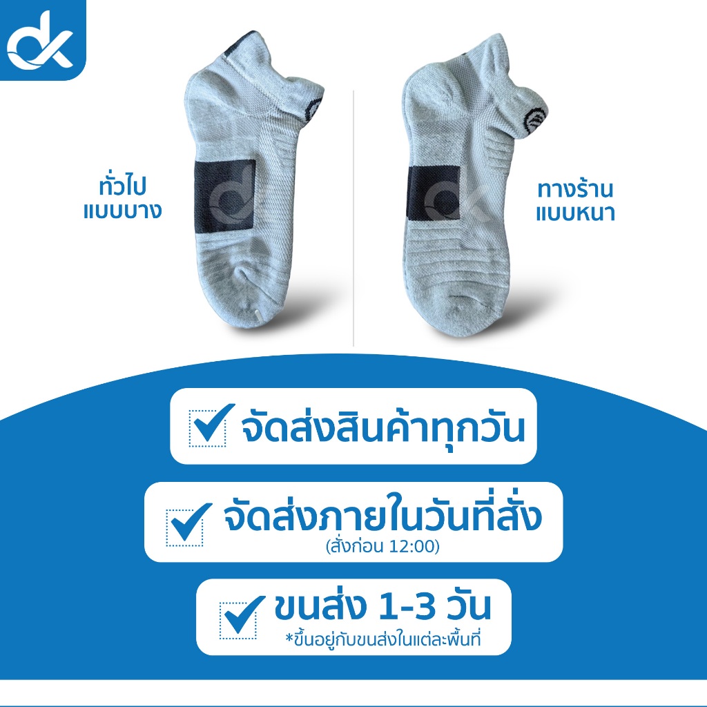 DK ถุงเท้าวิ่ง รุ่น MaxThick หนานุ่มพิเศษ กระชับเท้า แห้งเร็ว ระบายอากาศดี ใส่สบาย ชายหญิง 1 คู่