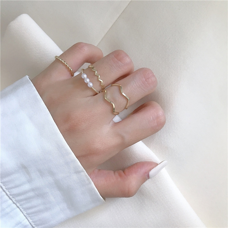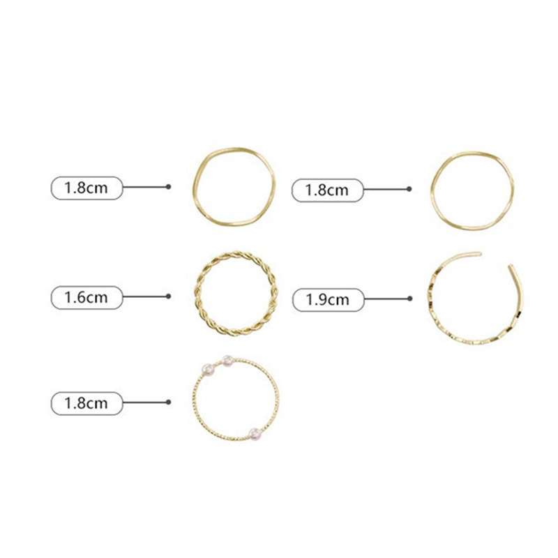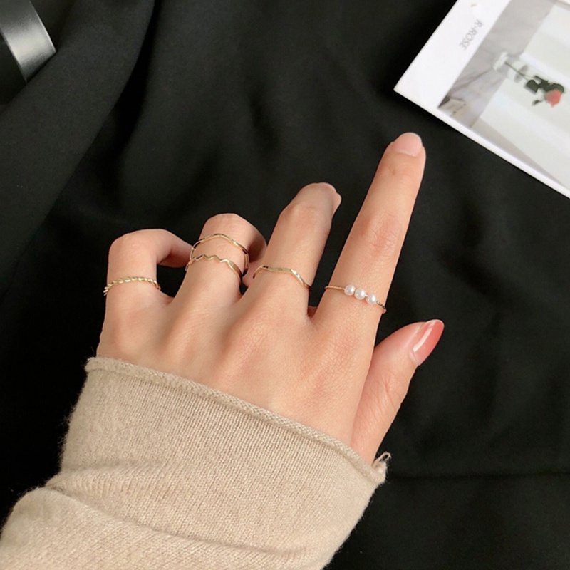 แหวนโลหะ แต่งมุกเทียม แฟชั่นเกาหลี สําหรับผู้หญิง 5 ชิ้น