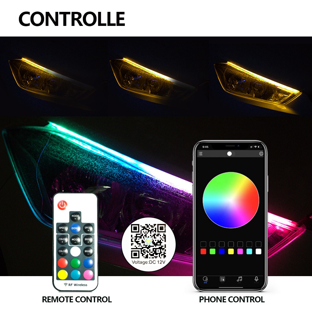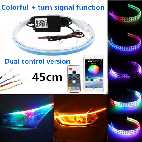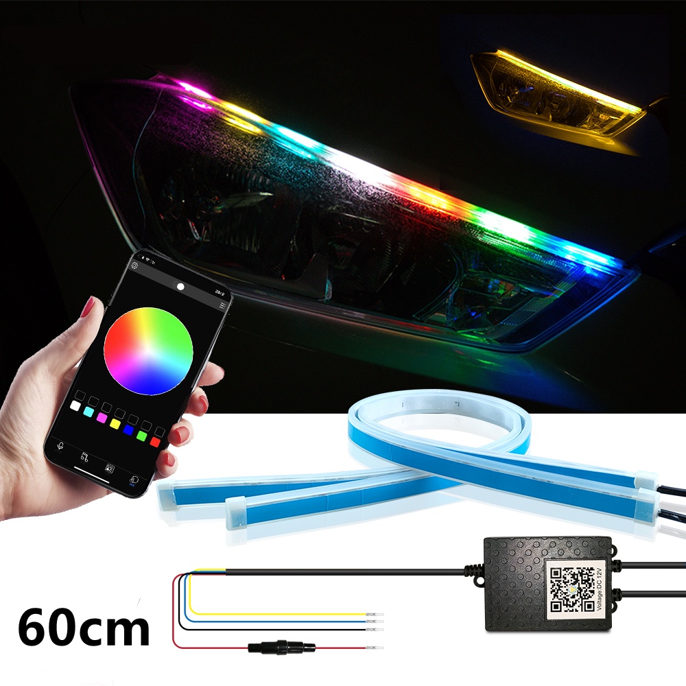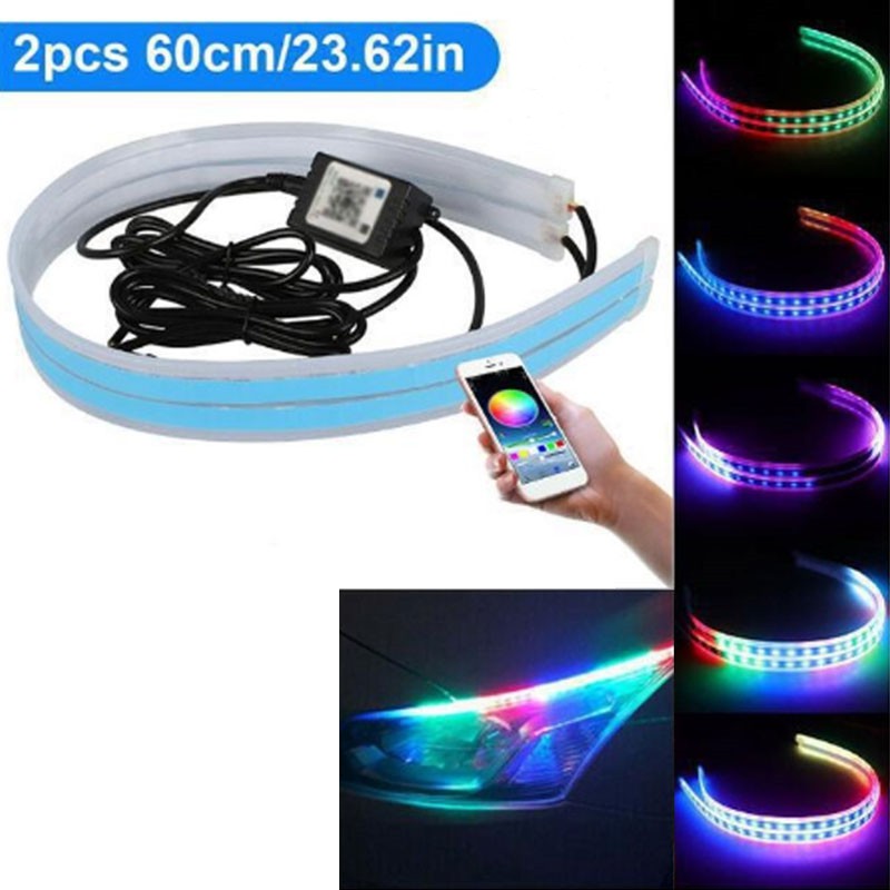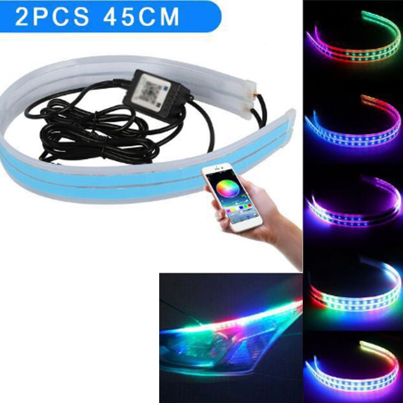 LEADTOPS ไฟกลางวัน ไฟเบรค ไฟสัญญาณ RGB Slim LED DRL 45 ซม. 60 ซม. สำหรับไฟหน้ารถ ควบคุมผ่านมือถือได้ 2 ชิ้น