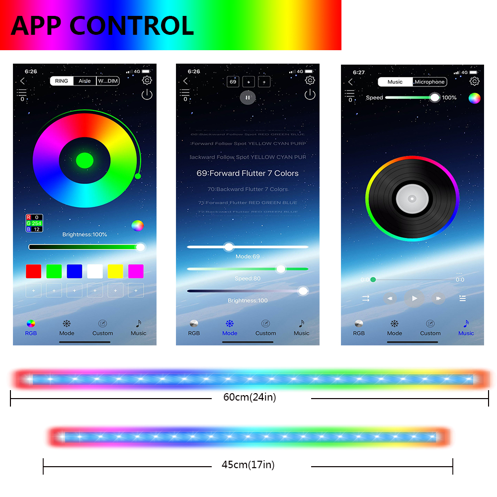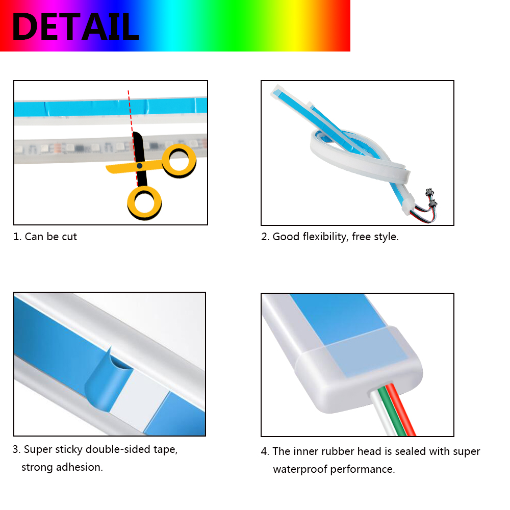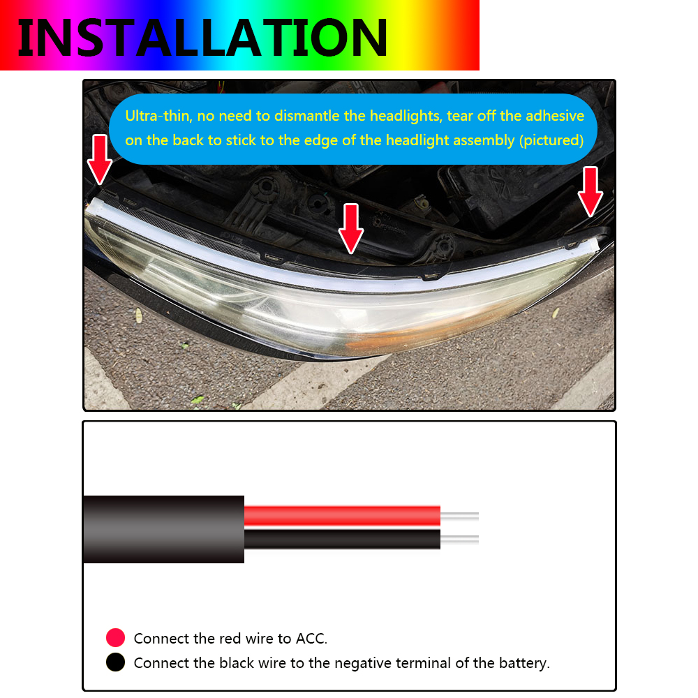 LEADTOPS ไฟกลางวัน ไฟเบรค ไฟสัญญาณ RGB Slim LED DRL 45 ซม. 60 ซม. สำหรับไฟหน้ารถ ควบคุมผ่านมือถือได้ 2 ชิ้น