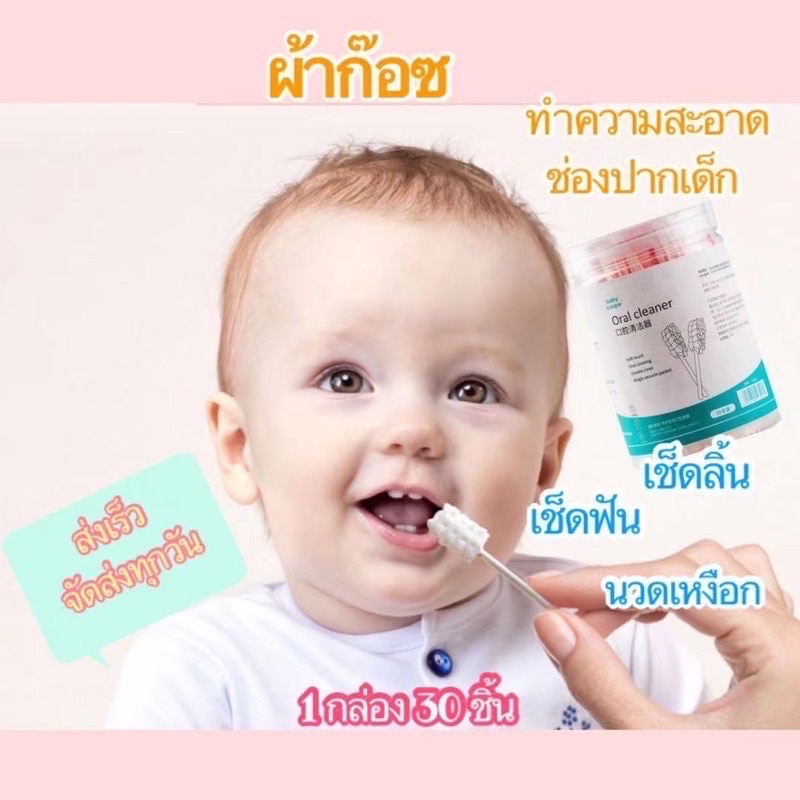ผ้าก๊อตทำความสะอาดช่องปาก ผ้าก๊อตเช็ดฟัน ที่แปรงลิ้นเด็กแบบใช้แล้วทิ้ง ผ้าก๊อตเช็ดลิ้น ผ้าเช็ดลิ้นเด็ก