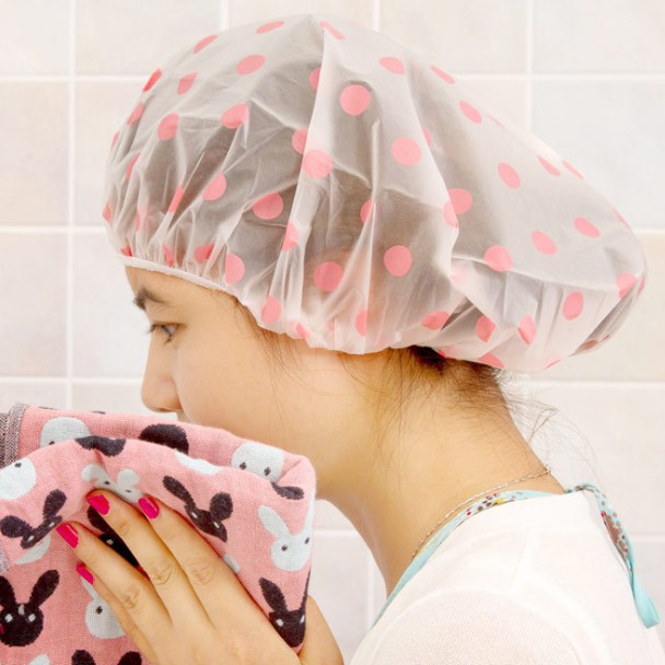 หมวกอาบน้ำ หมวกสปา แบบคลื่น พิมพ์ลายจุด คุณภาพสูง กันน้ำ ยืดหยุ่น