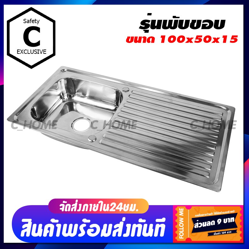 [C_HOME]อ่างล้างจานซิงค์ล้างจาน1หลุม+ที่พัก(ลายตรงห่าง)จะเป็นรุ่นพับขอบ(ลายตรงแคบ)จะมีรุ่นฝังและพับขอบ ขนาด100X50ลึก15cm