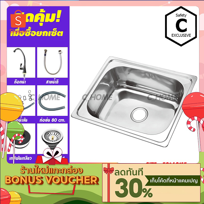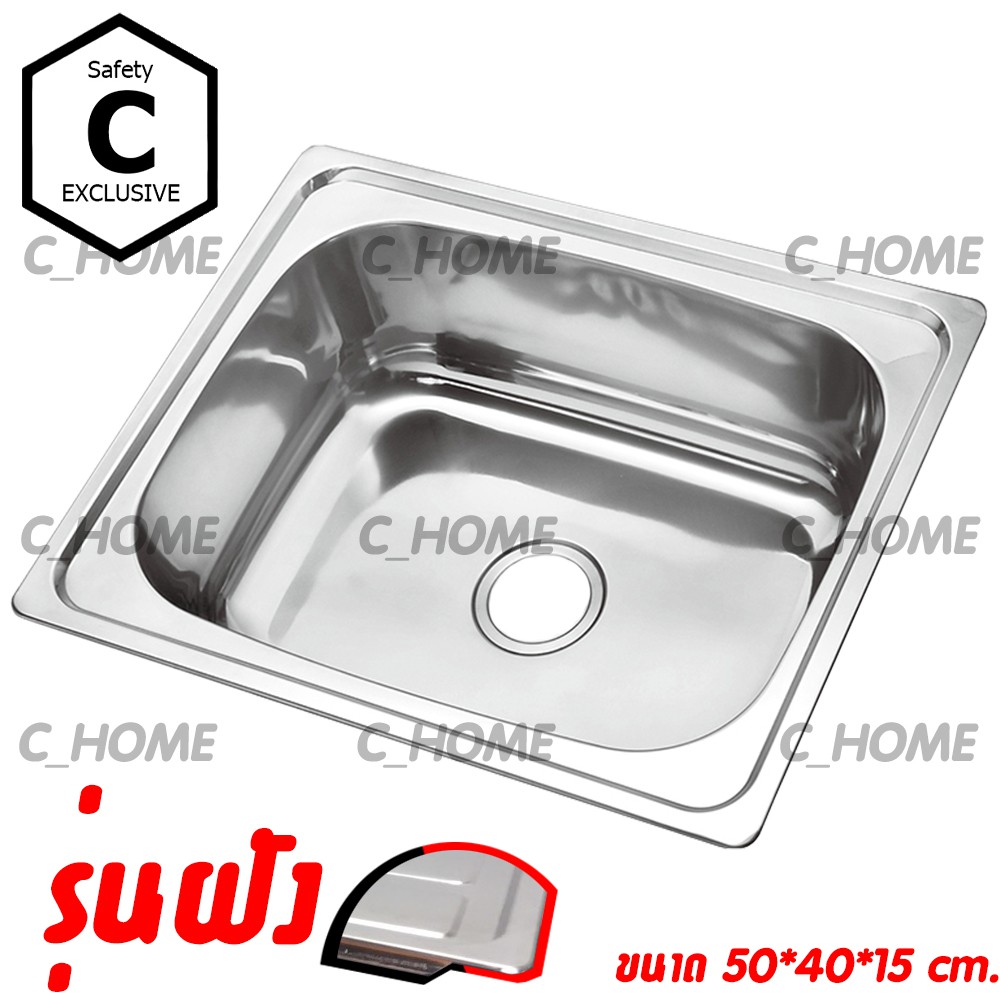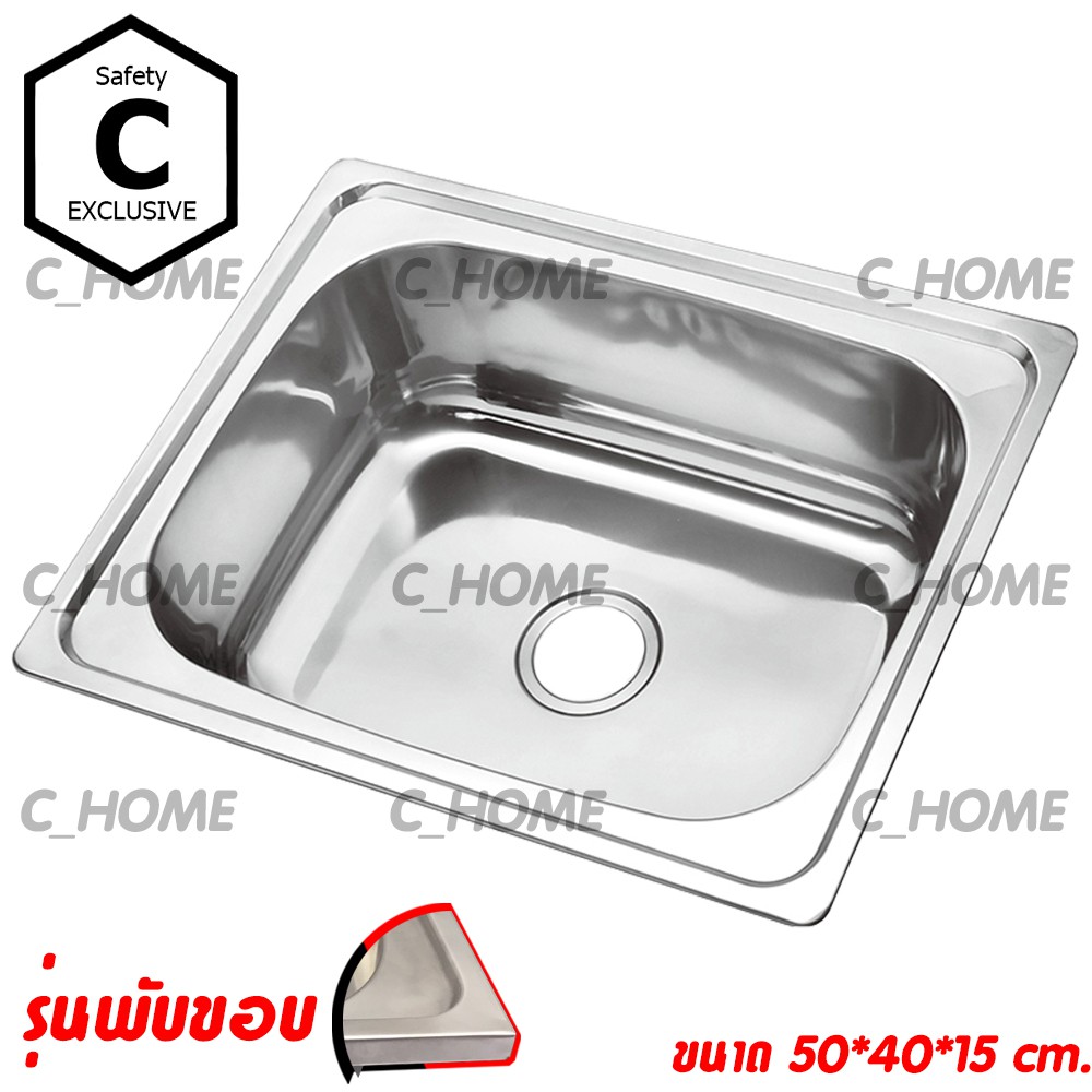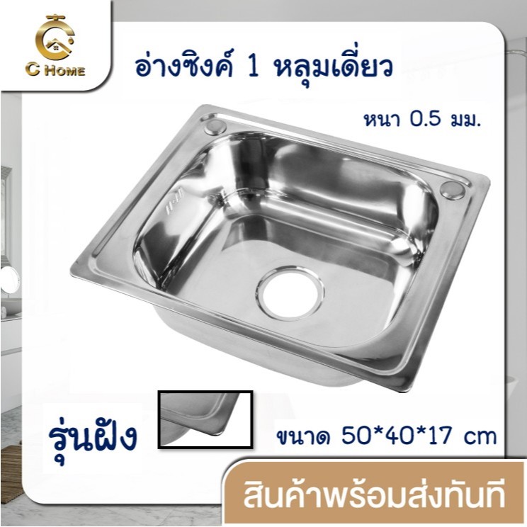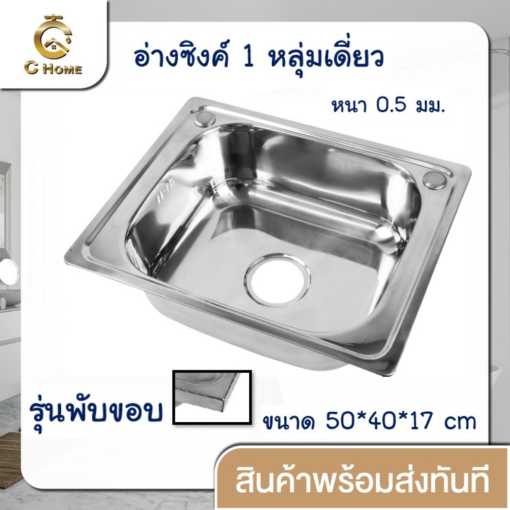 [C_HOME]อ่าง อ่างล้างจาน ซิงค์ล้างจาน อ่างซิงค์สแตนเลส 1 หลุมไม่มีที่พัก ขนาด50x40ลึก17cm มี2รุ่น รุ่นพับขอบและรุ่นฝัง
