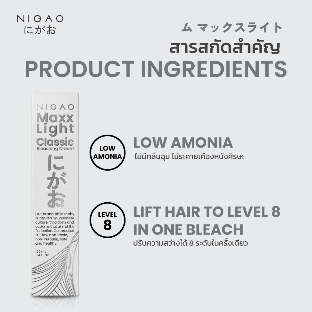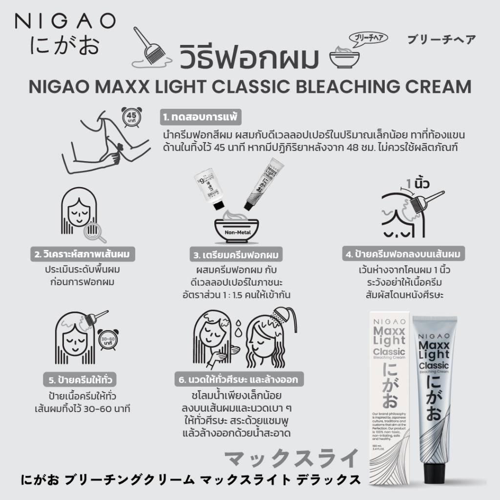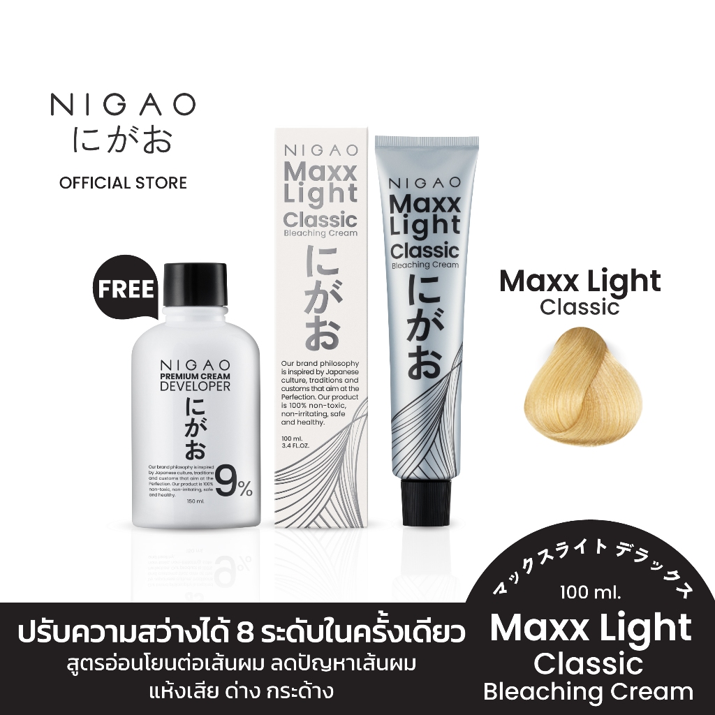 [ฟรี Developer] NIGAO Maxx Light Classic Bleaching Cream | นิกาโอะ แม็กซ์ ไลท์ ครีม ฟอกสีผม กัดสีผม สีย้อมผม 100 mL