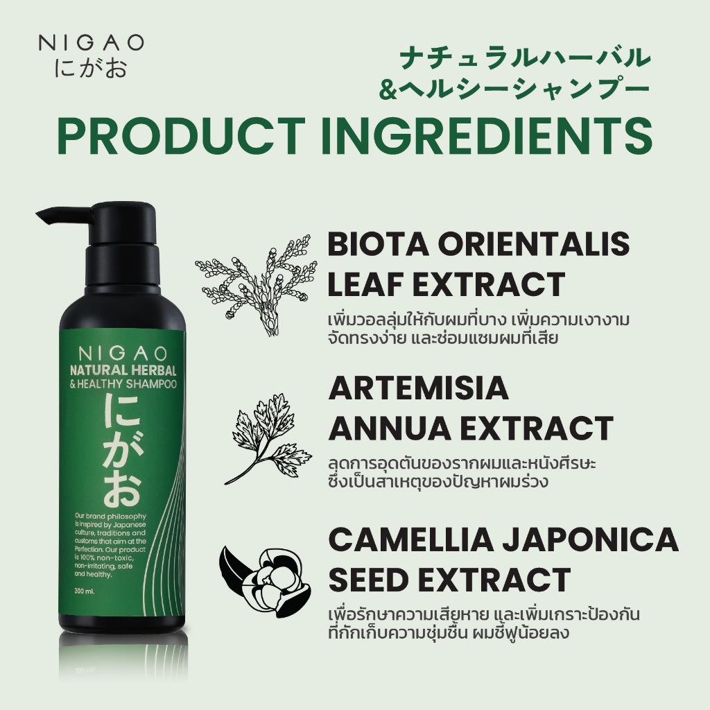 NIGAO Anti Hair Loss Herbal Shampoo | นิกาโอะ แอนตี้ แฮร์ ลอส เฮอร์บัล แชมพู 300 mL