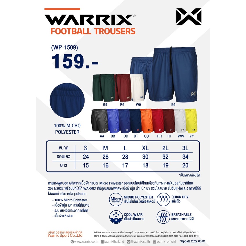 WARRIX กางเกงฟุตบอลทีมชาติ WP-1509