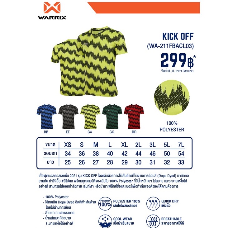 WARRIX เสื้อฟุตบอล KICK OFFเสื้อยืดพิมพ์ลาย(WA-211FBACL03)