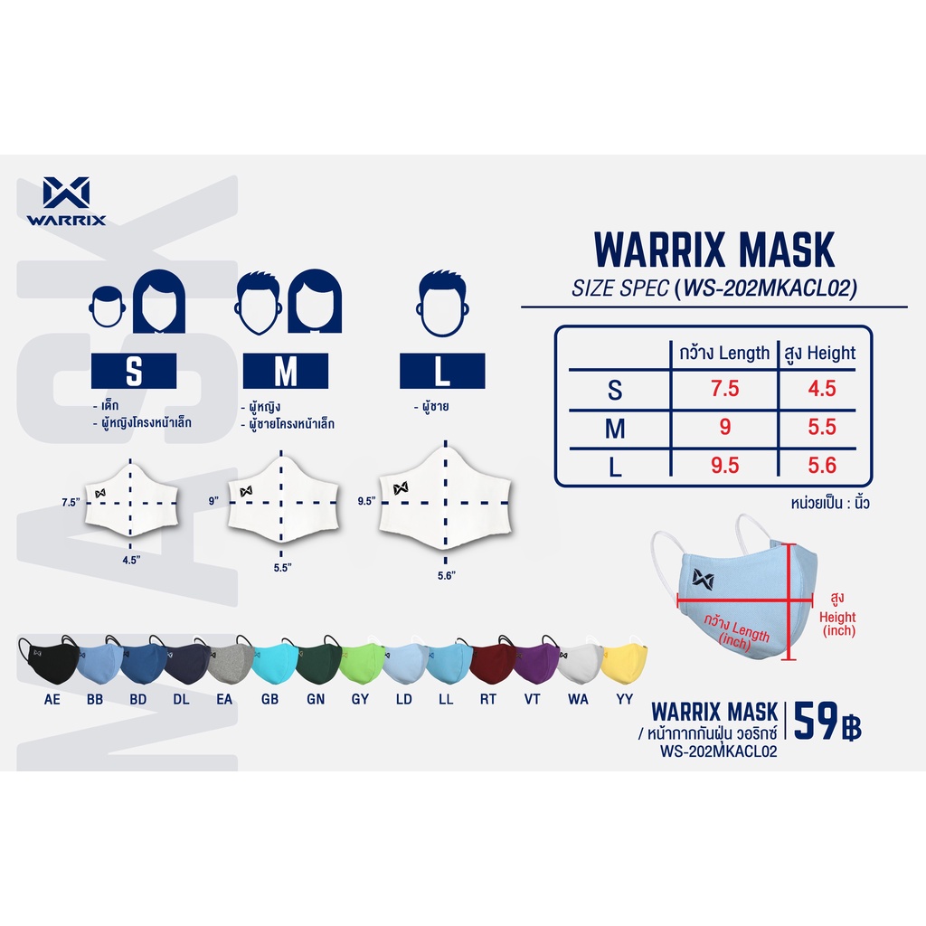 Warrix ผ้าปิดจมูก รุ่นแผ่นกรอง WS-202MKACL02