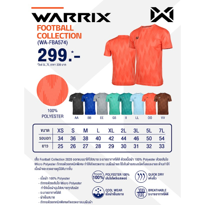 WARRIX เสื้อยืดคอกลมแขนสั้น WA-FBA574