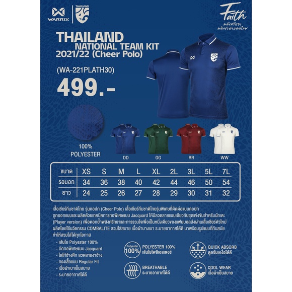 WARRIX Thailand National Team Kit 2021-22 ( Cheer Polo) WA-221PLATH30