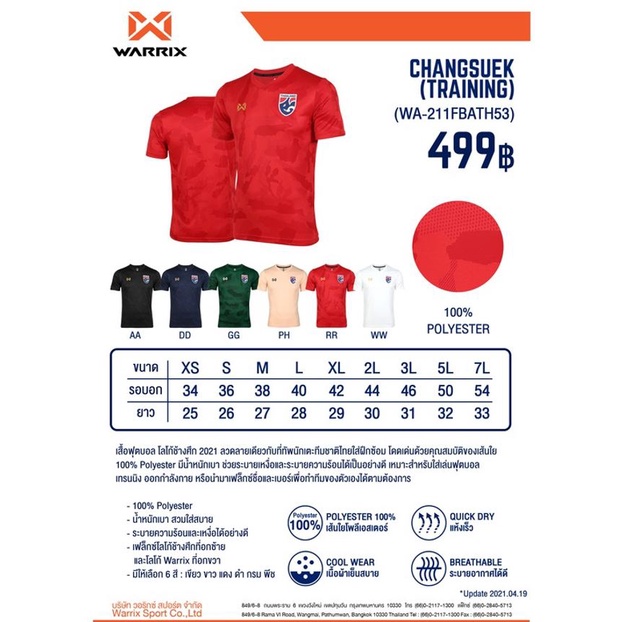WARRIX เสื้อฟุตบอล CHANGSUEK TRAINING WA-211FBATH53