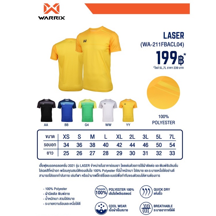 WARRIX เสื้อฟุตบอล LASER (WA-211FBACL04)