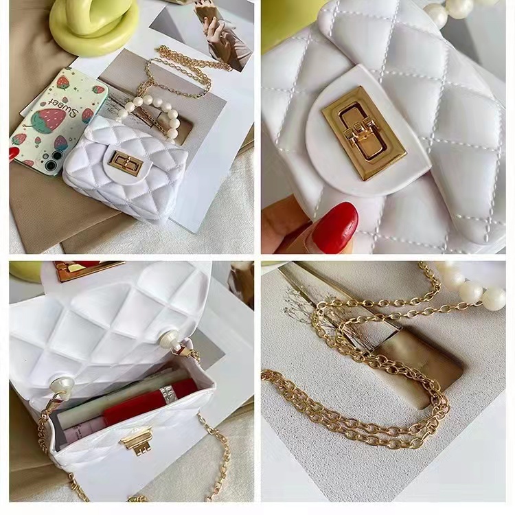 【ลดล้างสต๊อก】ใหม่อินเทรนด์แฟชั่นมุกโซ่กระเป๋าสะพายไหล่เดียวล็อคกระเป๋าเจลลี่กระเป๋า bag zz1100