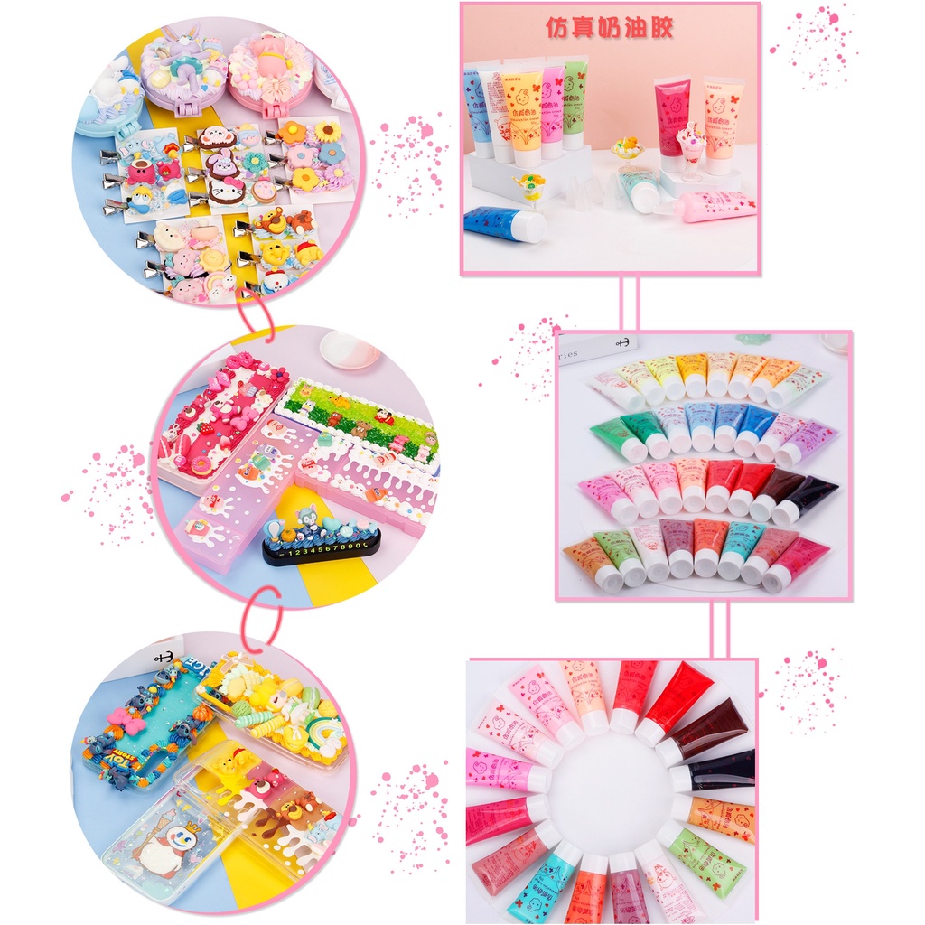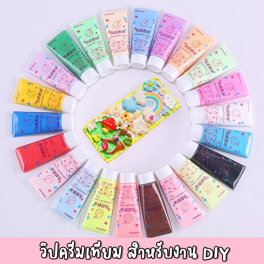 พร้อมส่ง!! วิปครีมเทียม 50ml./หลอด สำหรับตกแต่งเคสมือถือ แถมหัวบีบครีม(สุ่ม) (01CR001)