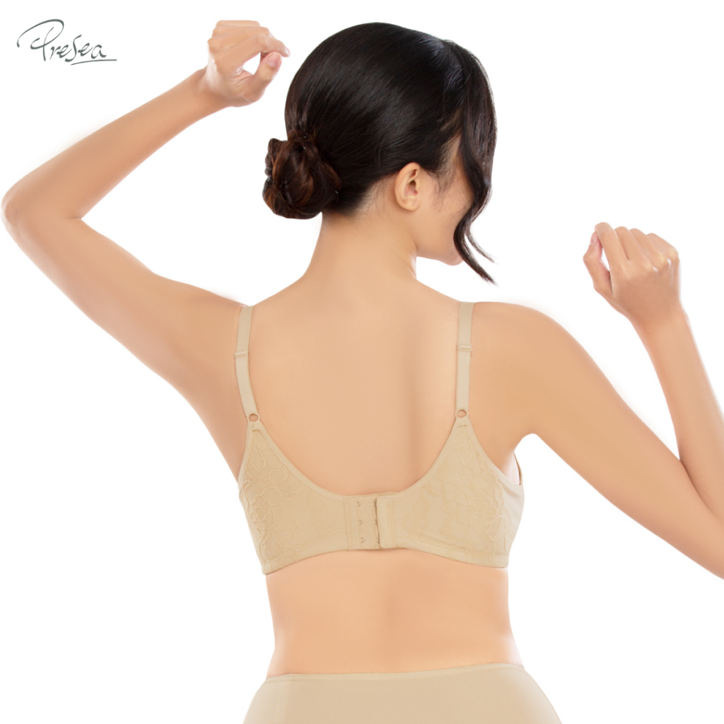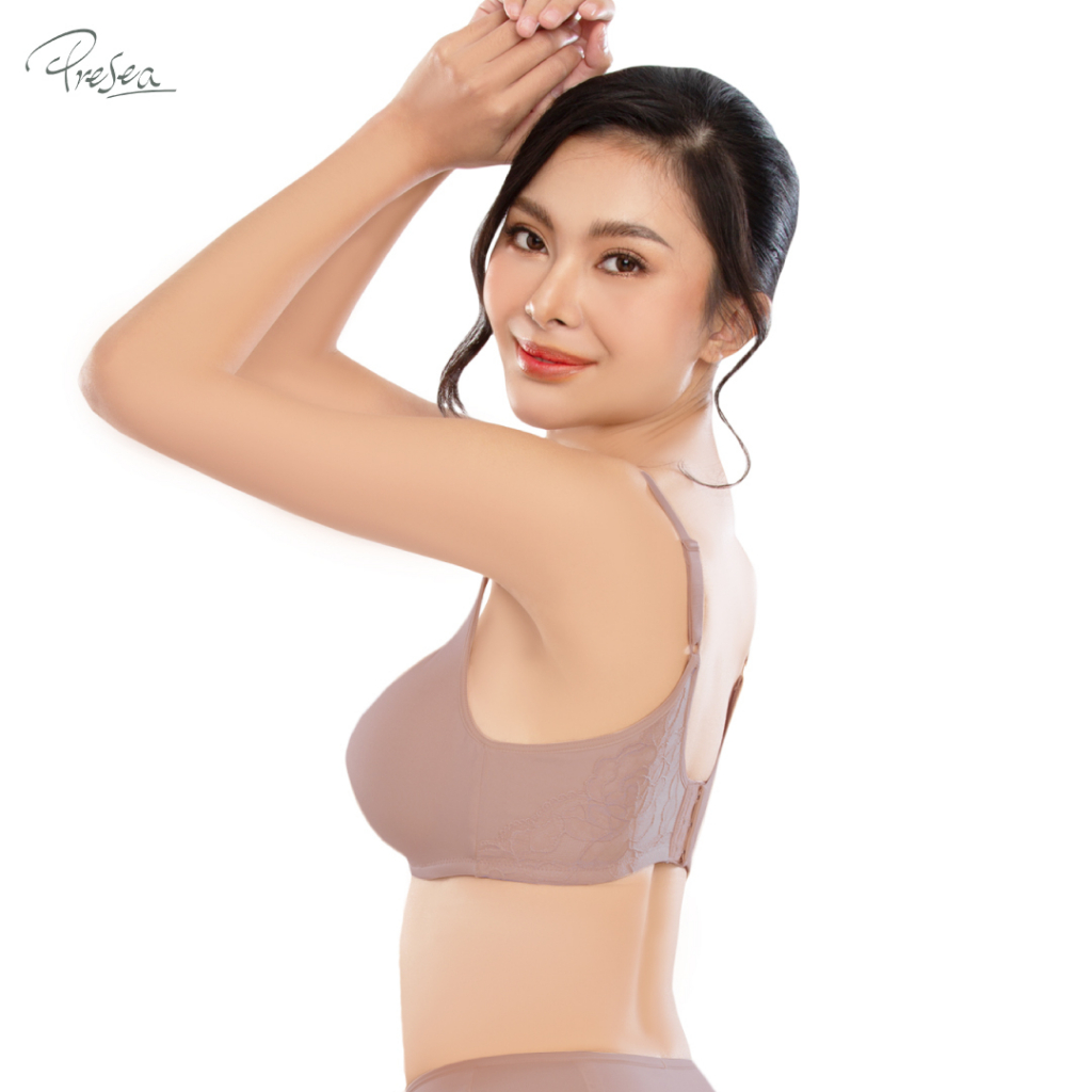 PRESEA SOFTBRA Wireless lace bra เสื้อในไร้โครง ลายลูกไม้ด้านหลัง สีดำ สีเนื้อ สีกุหลาบป่า รุ่น MA1510