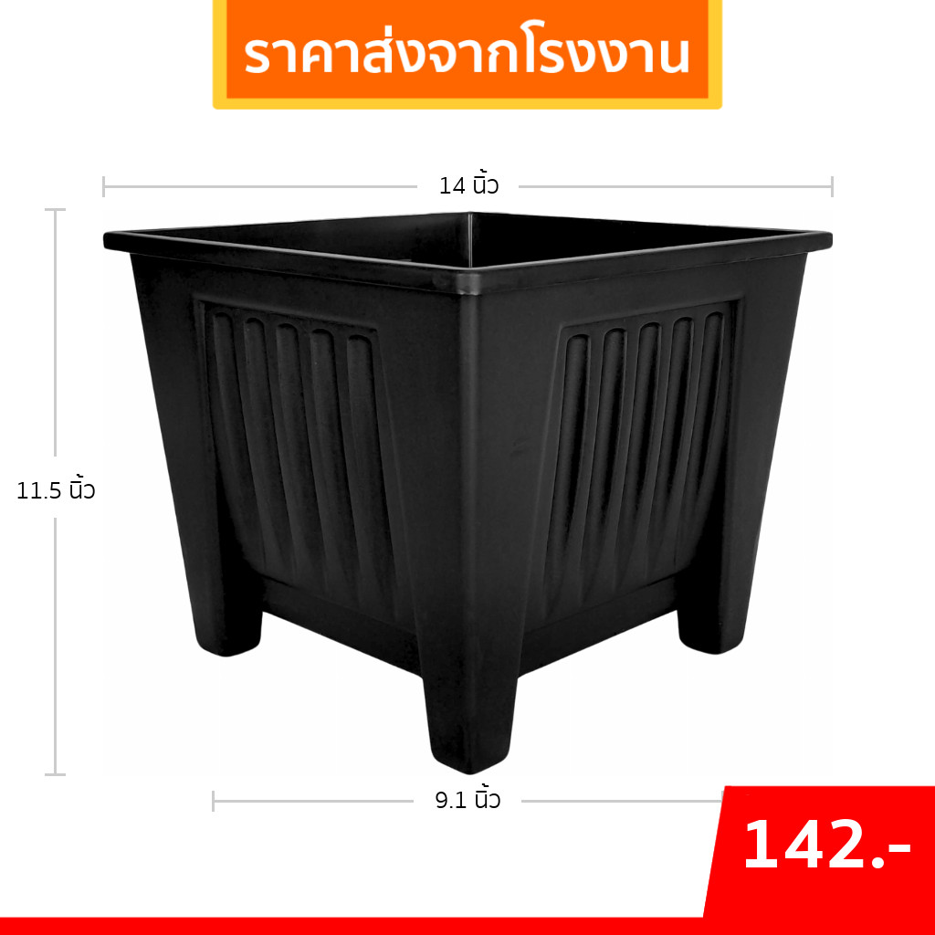 กระถางต้นไม้ กระถางกุหลาบ กระถางสี่เหลี่ยมทรงสูง 13 นิ้ว สีดำ Bundle 5 ใบ ชิ้น อัน
