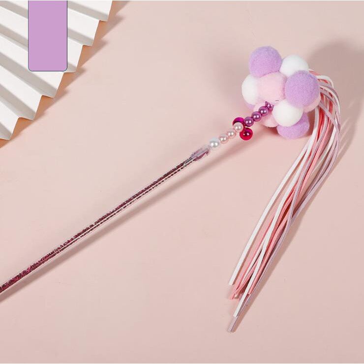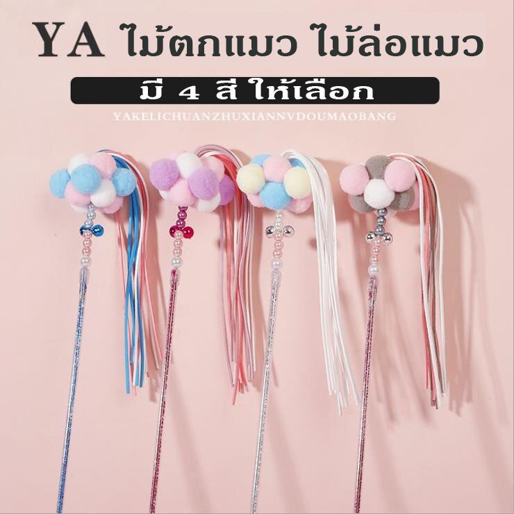 ไม้ตกแมว ไม้ล่อแมว รุ่นปอมปอม มีกระดิ่ง ไม้แมว ของเล่นแมว พู่แมว ของเล่นแมว ของเล่นแมวแท่งไม้ติดกระดิ่ง