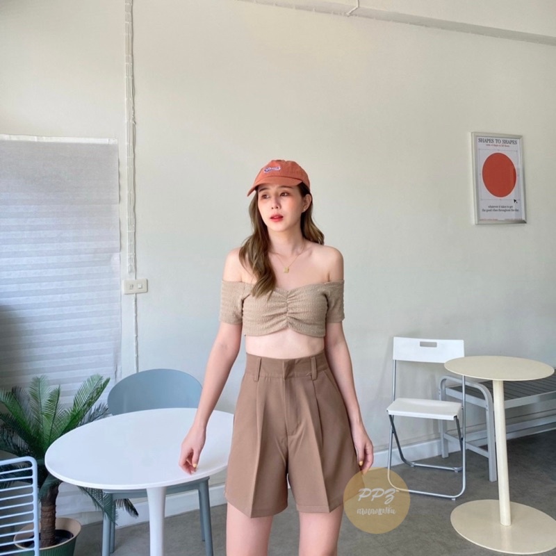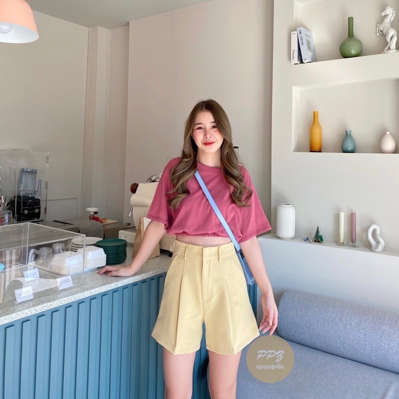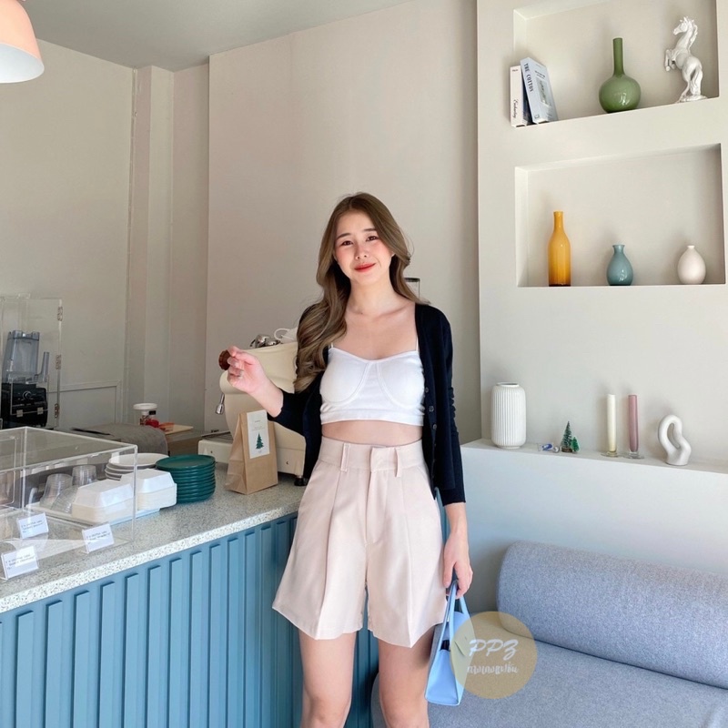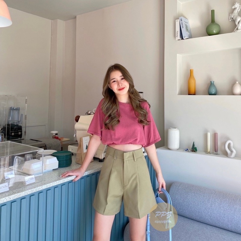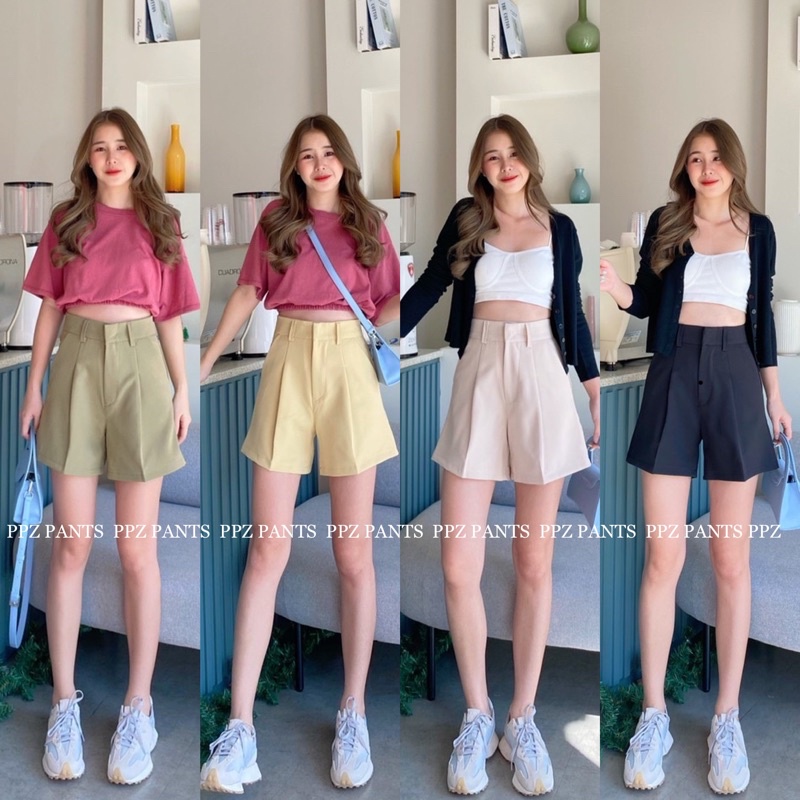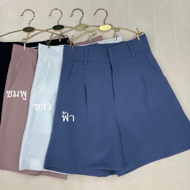 🌵Basic style👖กางเกงขาสั้น เอวสูง ตะขอหน้า หูเข็มขัด ผ้าไอด้า กางเกงผู้หญิง