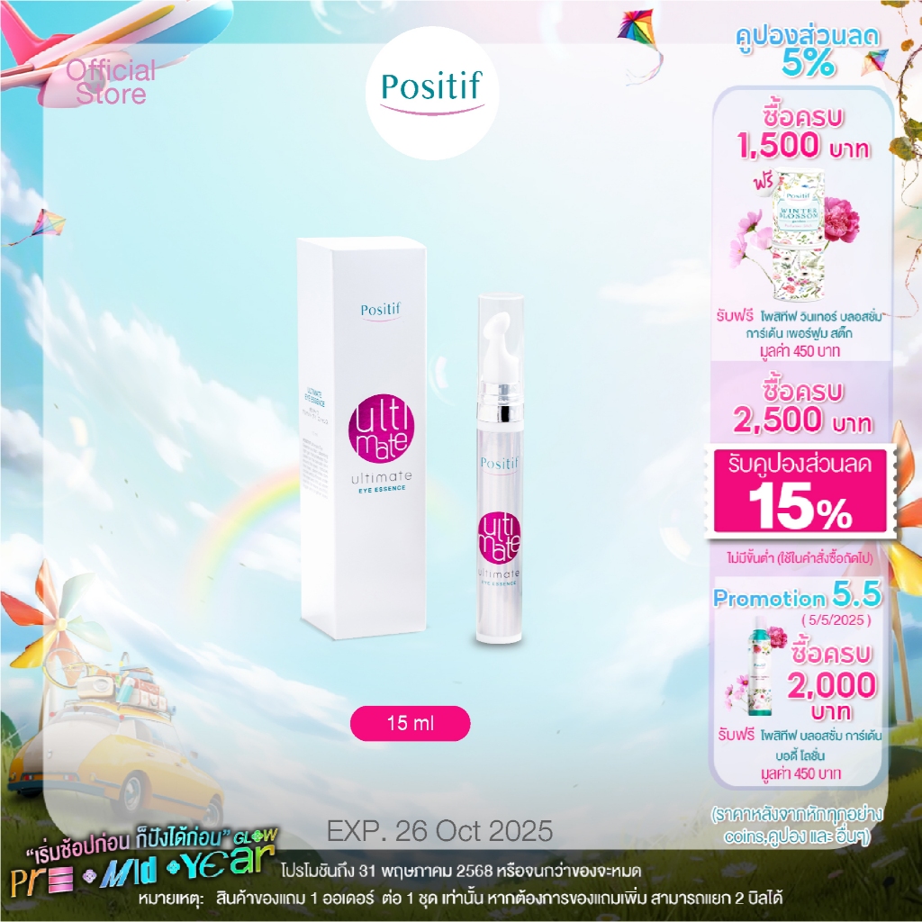 Positif ultimate eye essence 15 ml. โพสิทีฟ อาย เอสเซ้นส์ บำรุง รอบดวงตา รอยคล้ำใต้ตา โปรตีนไข่มุก