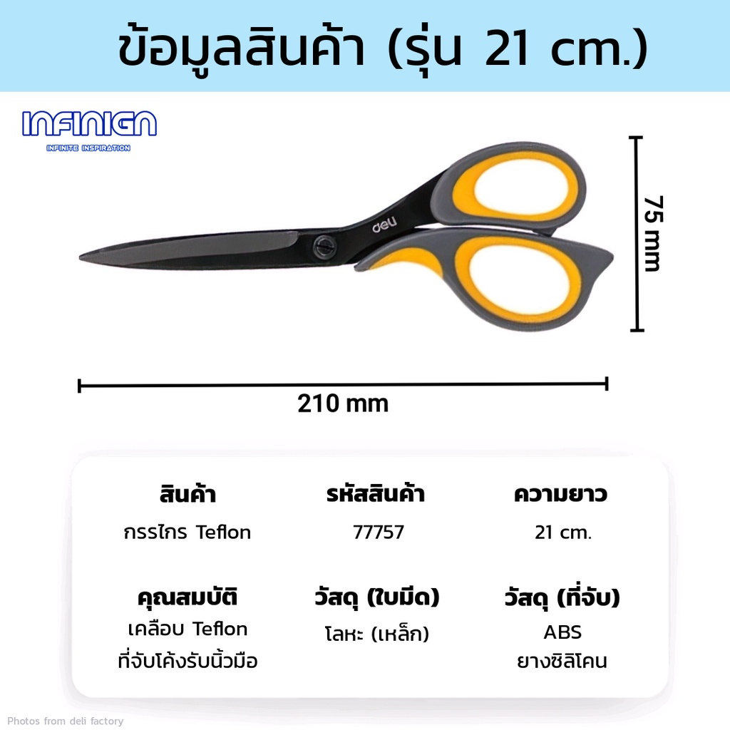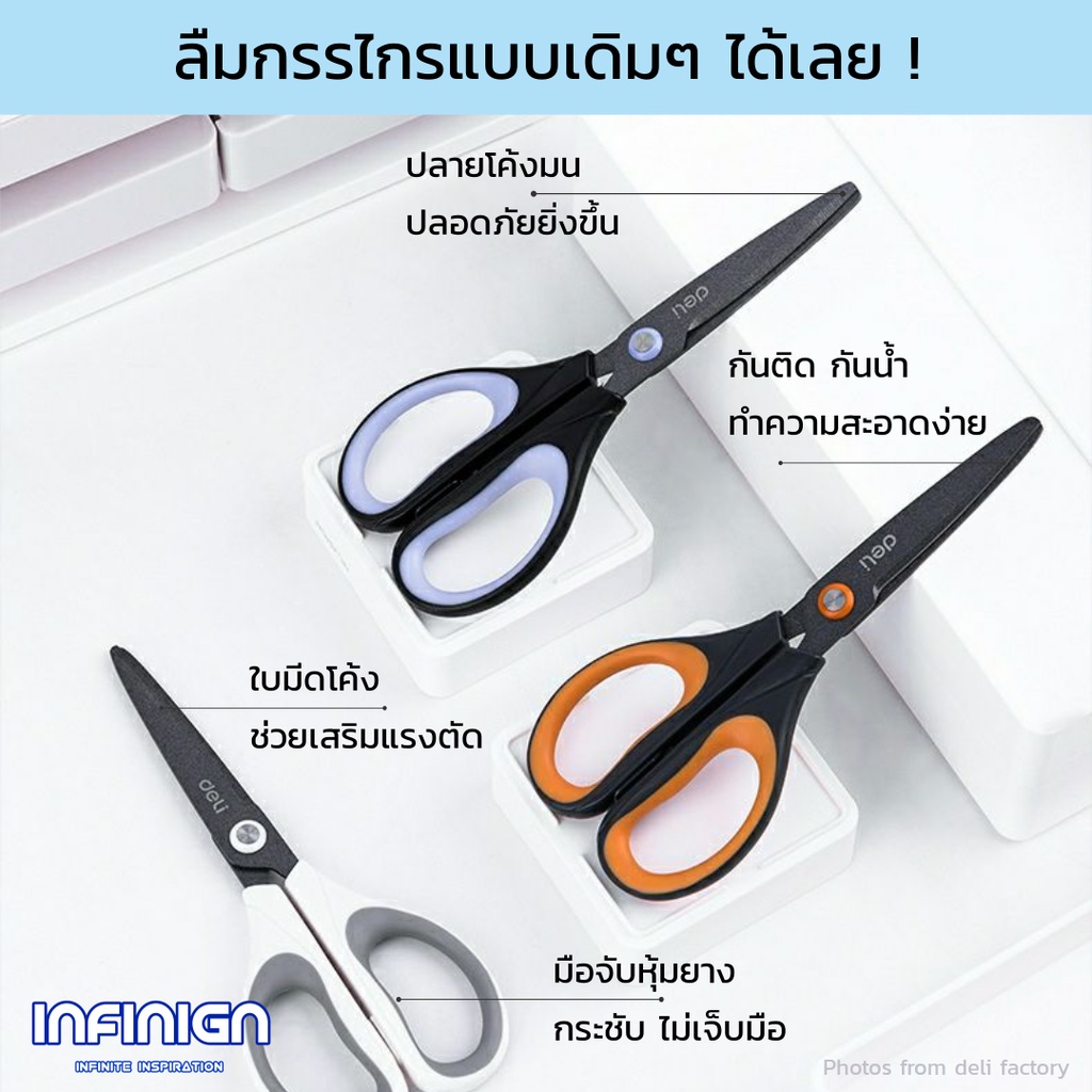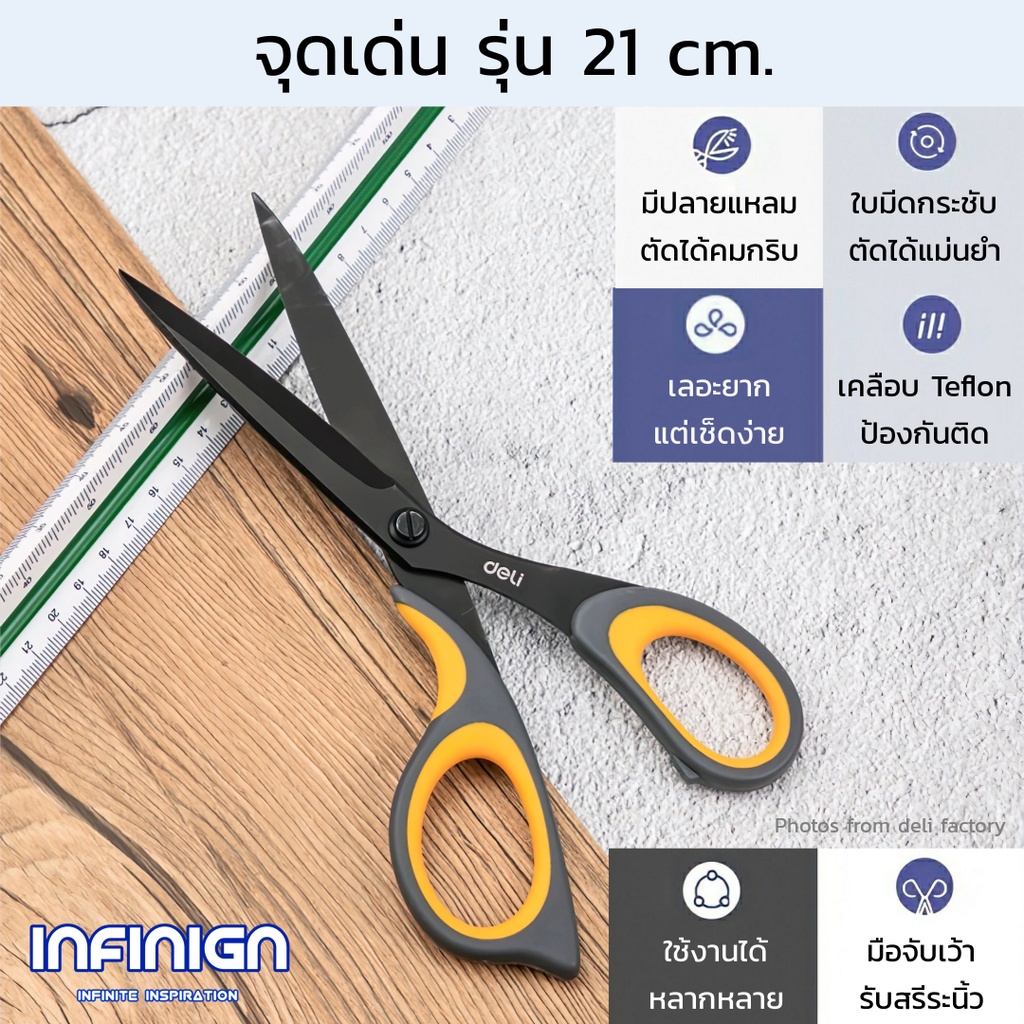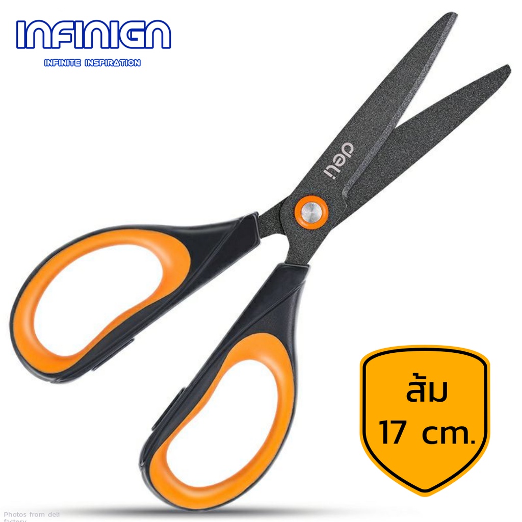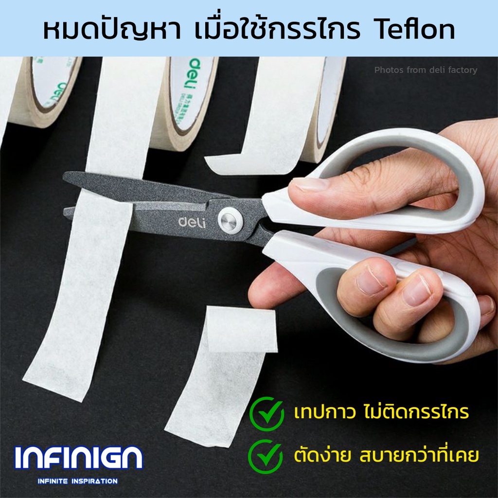 Deli กรรไกร Teflon (เทฟล่อน) ตัดลื่น ตัดเทปกาวไม่ติด ใช้ในบ้าน/ออฟฟิศ งานครัว แพ็คสินค้า งาน DIY