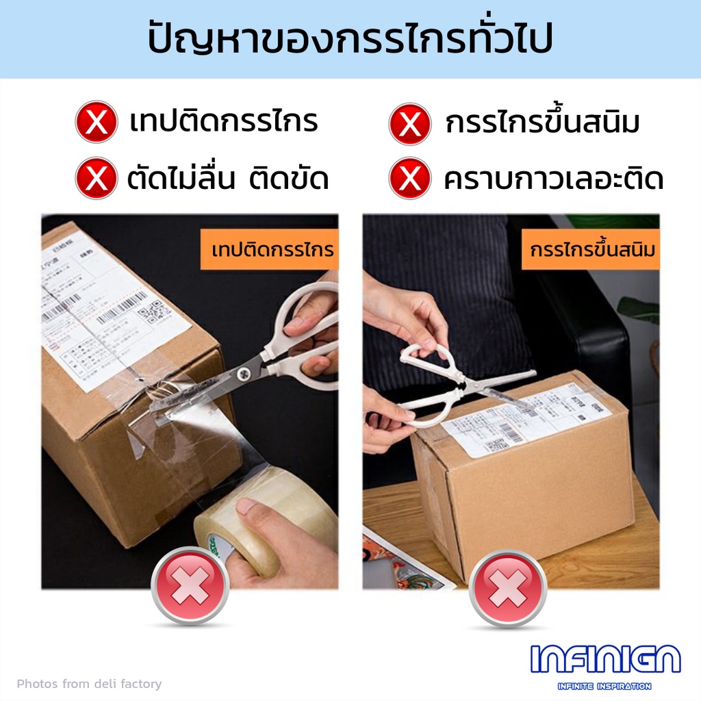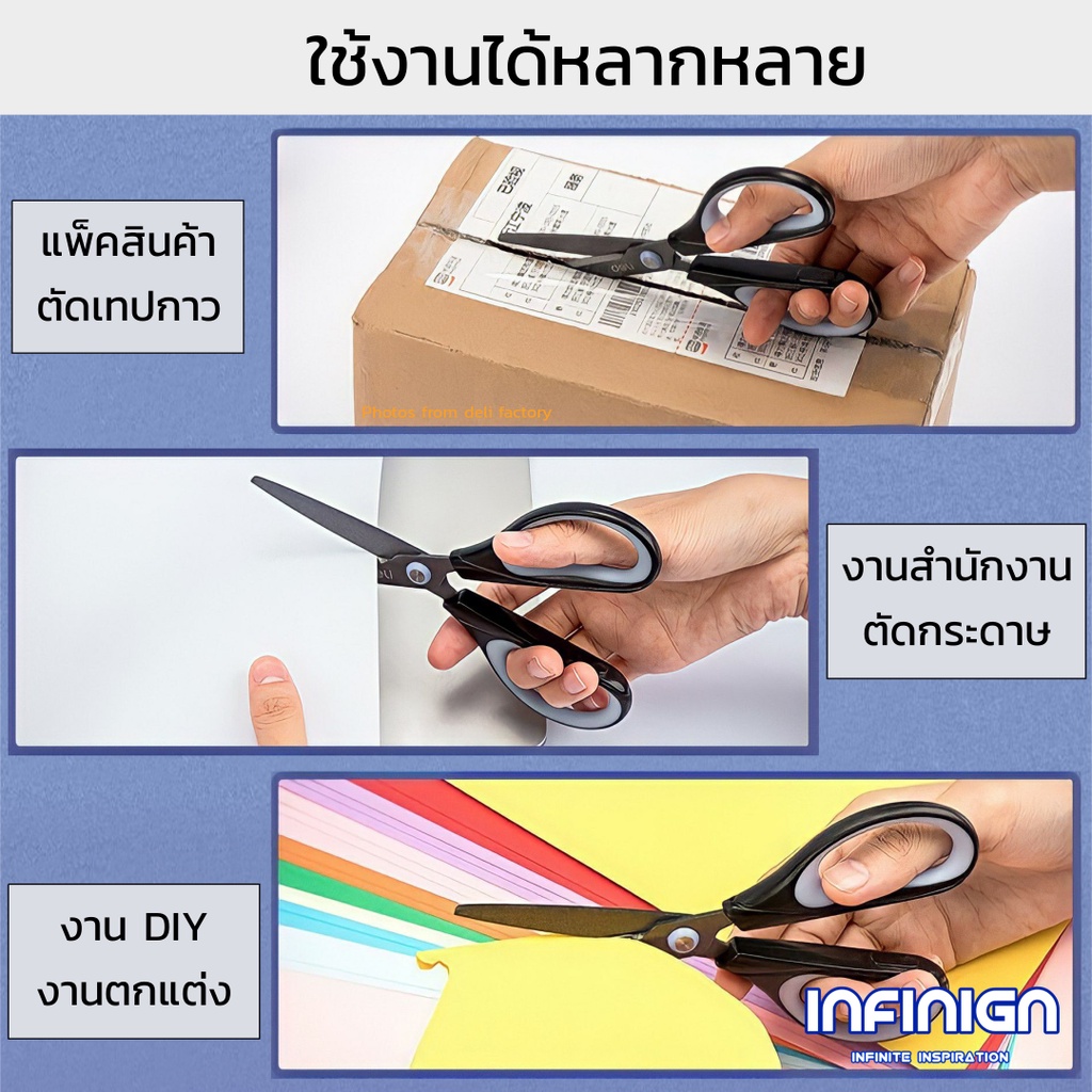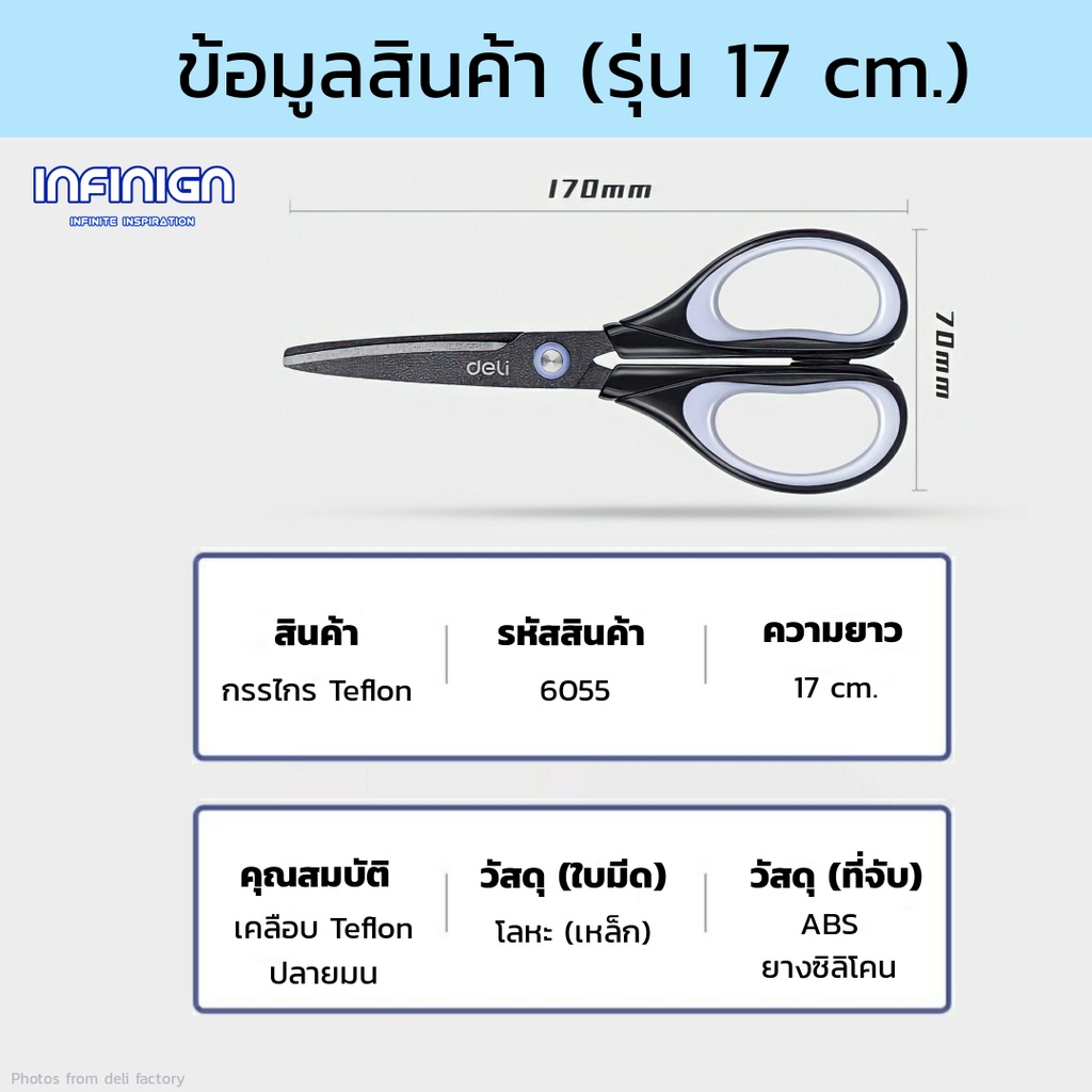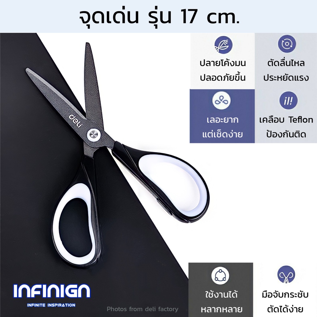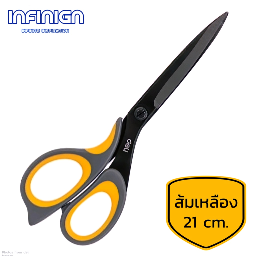 Deli กรรไกร Teflon (เทฟล่อน) ตัดลื่น ตัดเทปกาวไม่ติด ใช้ในบ้าน/ออฟฟิศ งานครัว แพ็คสินค้า งาน DIY