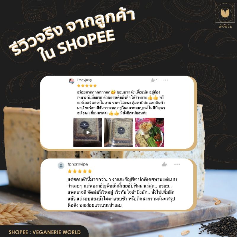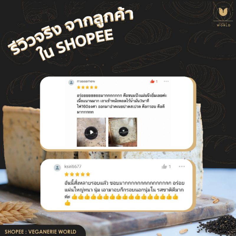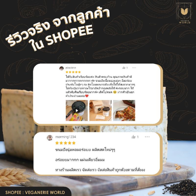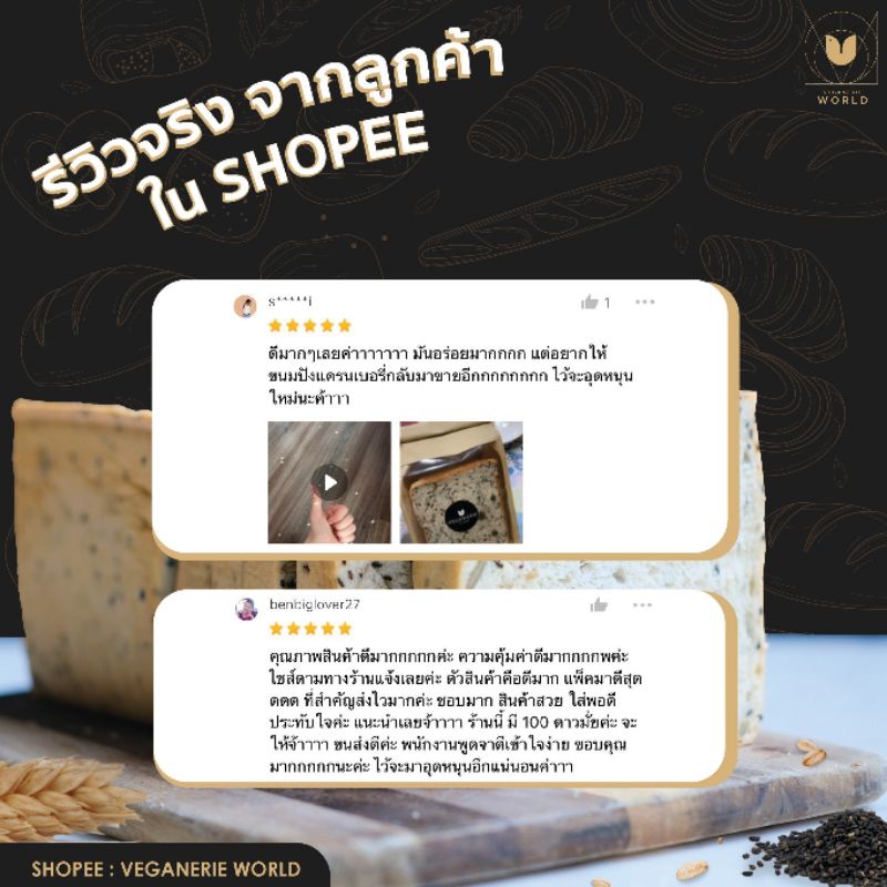 ขนมปังงาดำและธัญพืช Vegan Cereal Bread (5 แผ่น) ตรา Veganerie