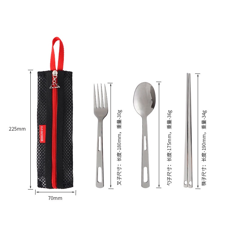 ชุดช้อนส้อมพกพา กิจกรรมกลางแจ้ง ตั้งแคมป์ เครื่องใช้บนโต๊ะอาหารชุดเดียว ตะเกียบ ช้อน ส้อม ชุด3ชิ้น สแตนเลส