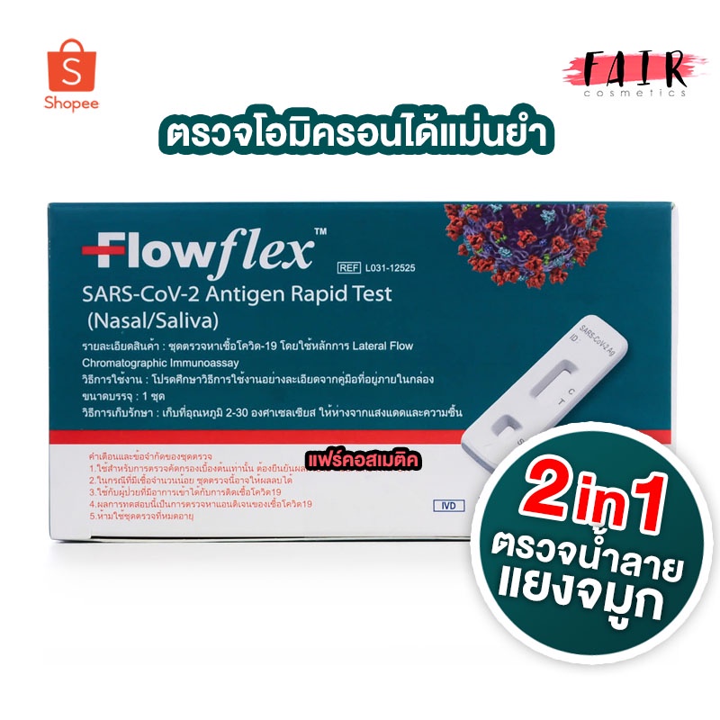 กล่องเขียว [ตรวจได้ทั้ง น้ำลาย/แยงจมูก] 2in1 Flowflex SARS-CoV-2 Antigen Rapid Test [Nasal/Saliva] ชุดตรวจโควิด omicron