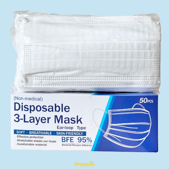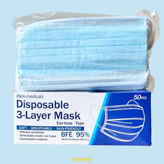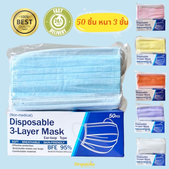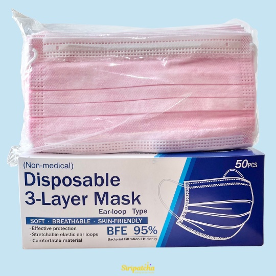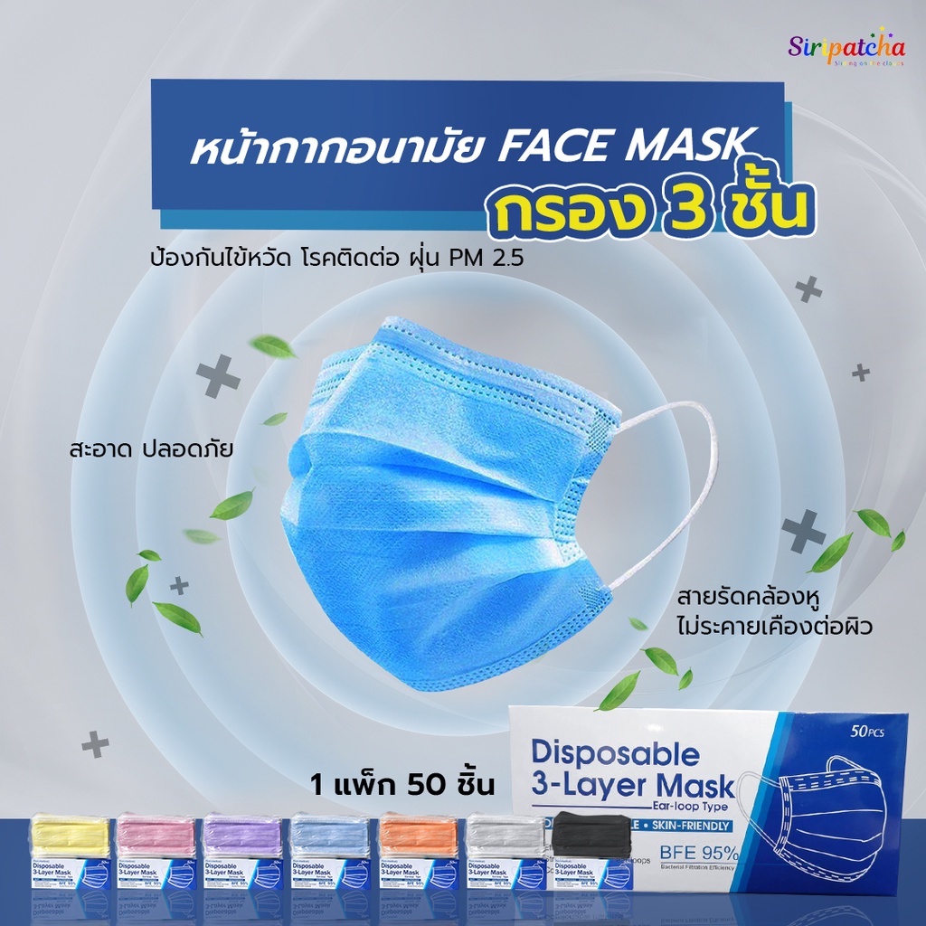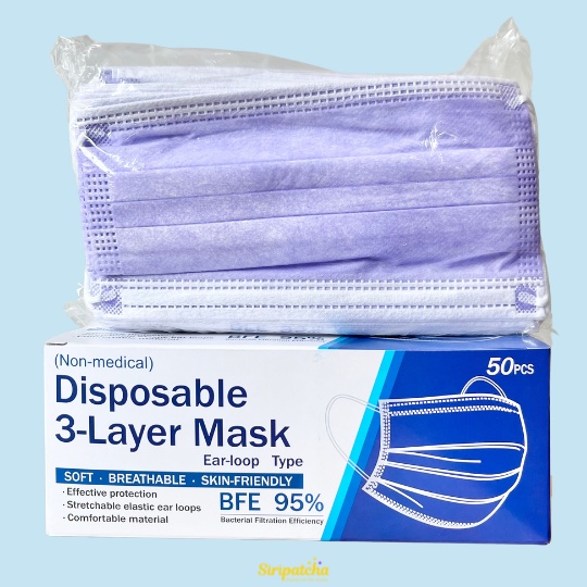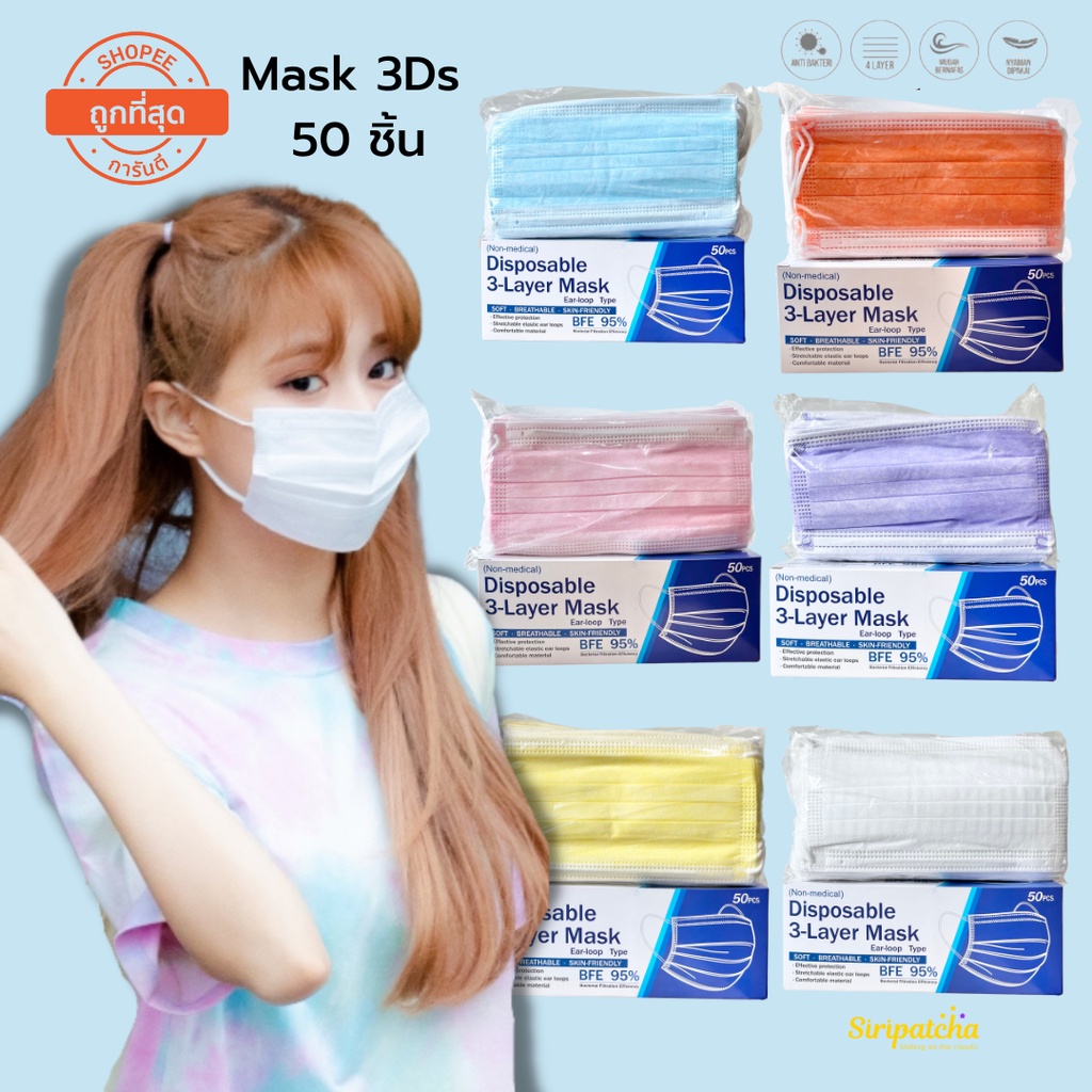 Siripatcha แมสก์ 3 ชั้น หลากสีกล่องละ 50 ชิ้น MASK3D Face Mask