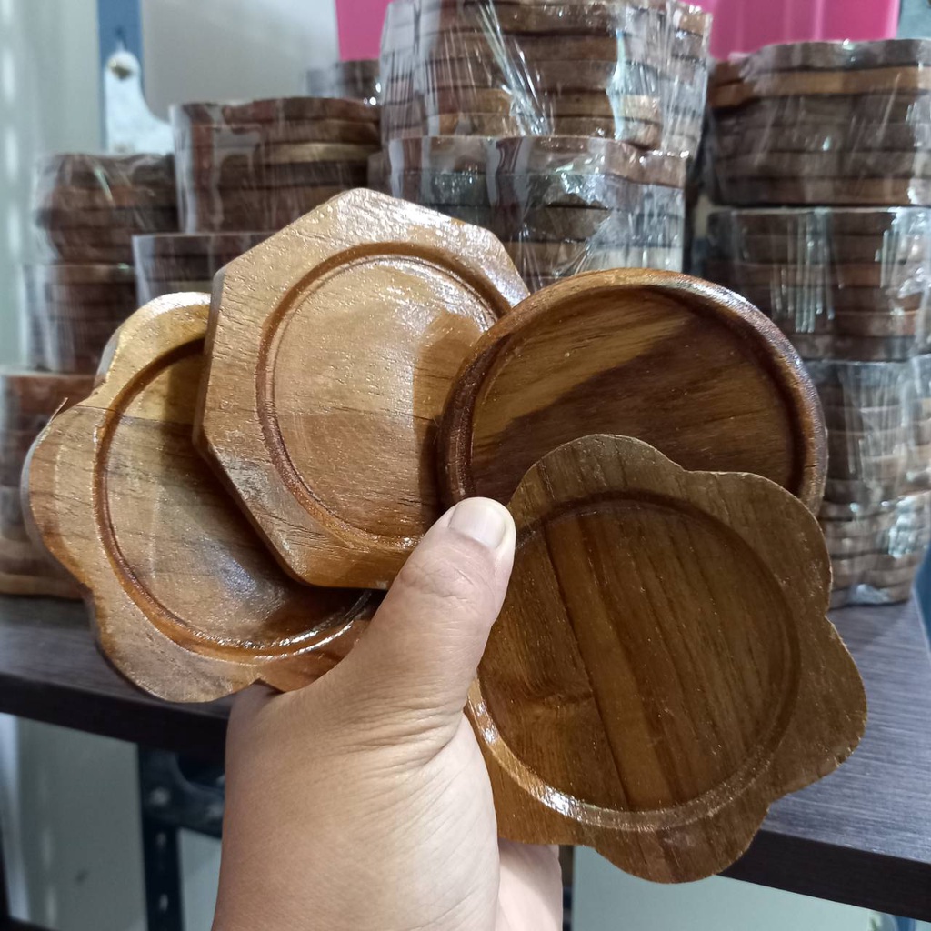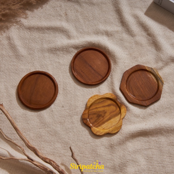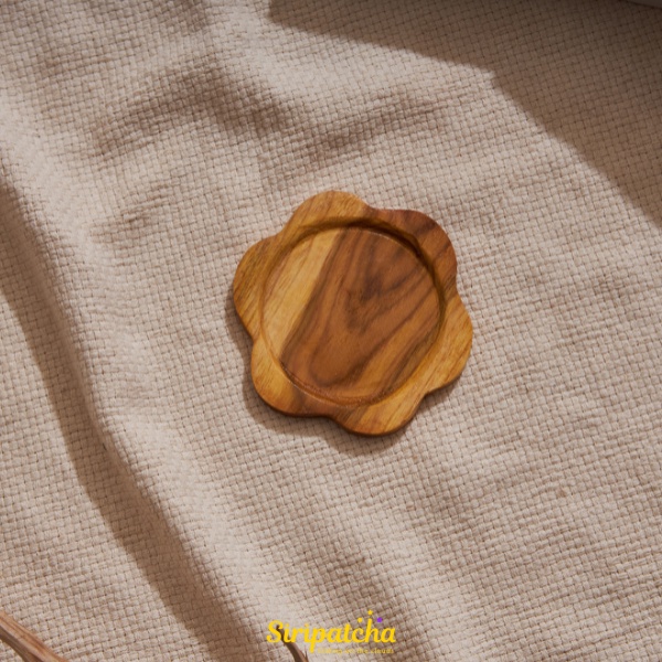 Siripatcha จานรองแก้วมินิมอล ไม้สักแท้ จ.แพร่ SA06