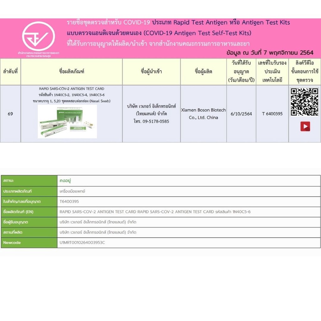 Siripatcha ชุดตรวจโควิด-19 (Boson) สามารถตรวจได้ทุกสายพันธุ์RAPID SARS-COV-2 A