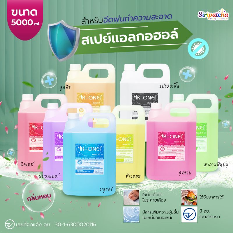 Siripatcha แอลกอฮอล์ล้างมือ แอลกอฮอล์แท้ แบบเติมใหญ่ ขนาด 5,000 ML.food grade กลิ่นหอม แอลกอฮอล์ 75% v/v SPA03-6