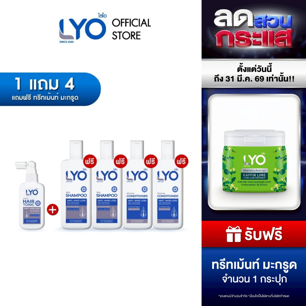 [ซื้อ 1 แถม 4 + ทรีทเม้นท์มะกรูด] ไลโอ แฮร์โทนิค + แชมพู + ครีมนวดผม
