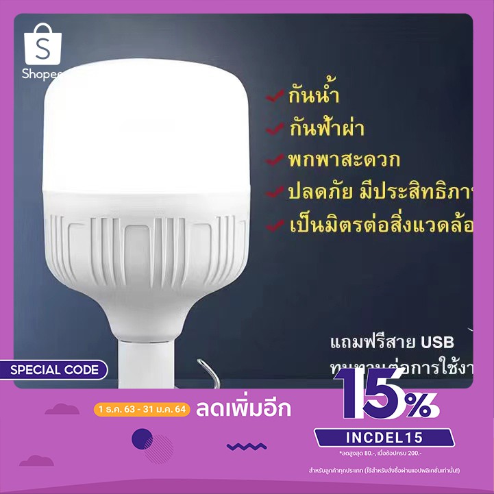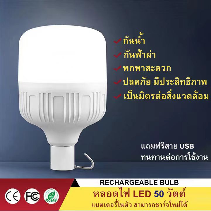 Nobi House หลอดไฟ LED (แบบชาร์จไฟได้)ไฟฉุกเฉิน ใช้สำหรับตลาดกลางคืน ไฟถนน ไฟกลางแจ้ง โคมไฟติดผนัง โคมไฟสนาม