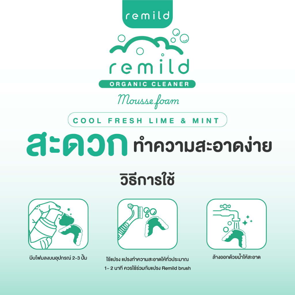 ลด50%ในไลฟ์ 🦷 ชุดสุดคุ้มแปรงรีเทนเนอร์ + Remild โฟมทำความสะอาด รีเทนเนอร์ ฟันปลอม จัดฟันใส ฟันยาง 1 ขวด