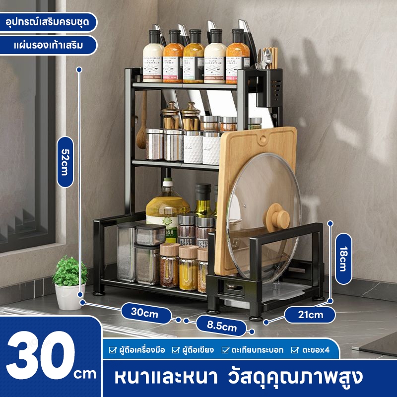 Homeplus [3/4-ชั้น] ชั้นวางเครื่องปรุง ชั้นวางเครื่องครัว สแตนเลสเคลือบสีดำ