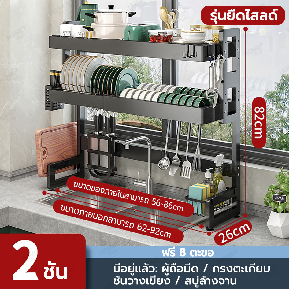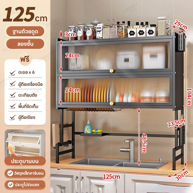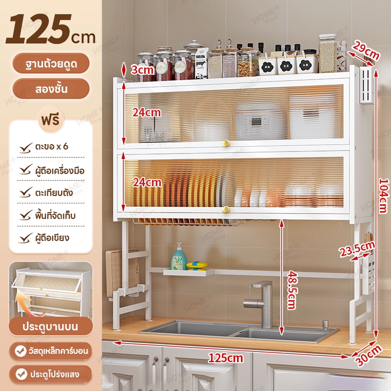 Homeplus [รุ่นอัพเกรด] ชั้นวางจานมีฝาปิด คร่อมอ่างล้างจาน กันฝุ่นสะอาด เหล็กหนาพิเศษ รับน้ำหนักได้ 80kg