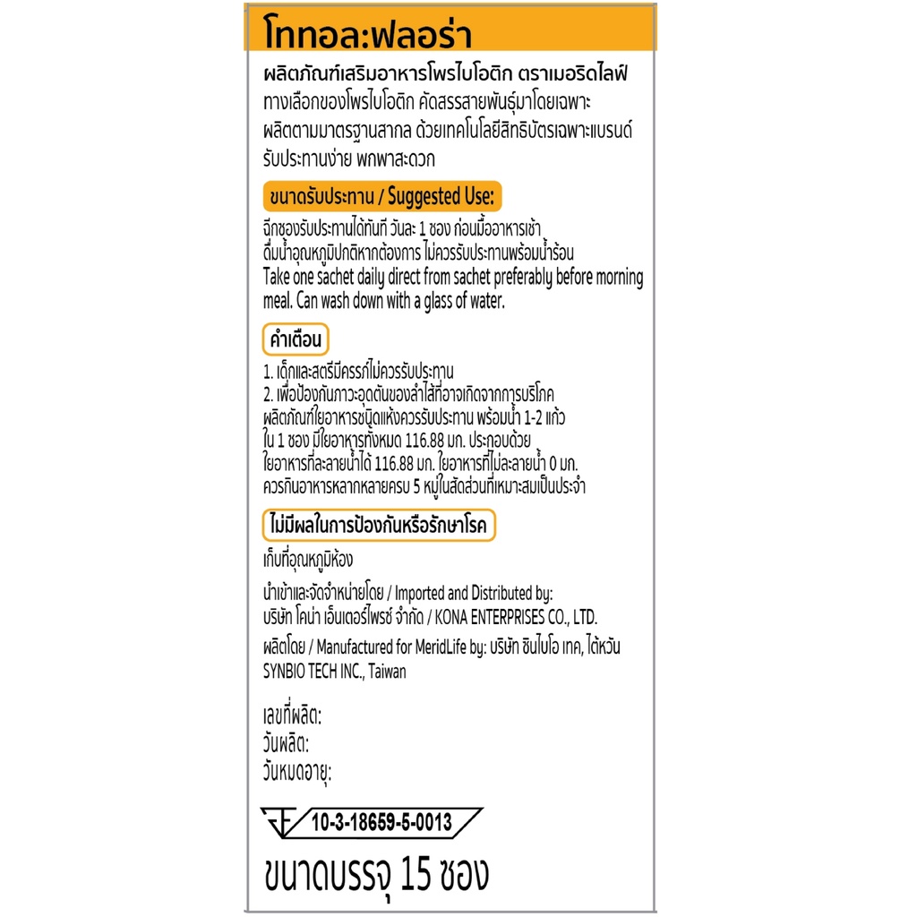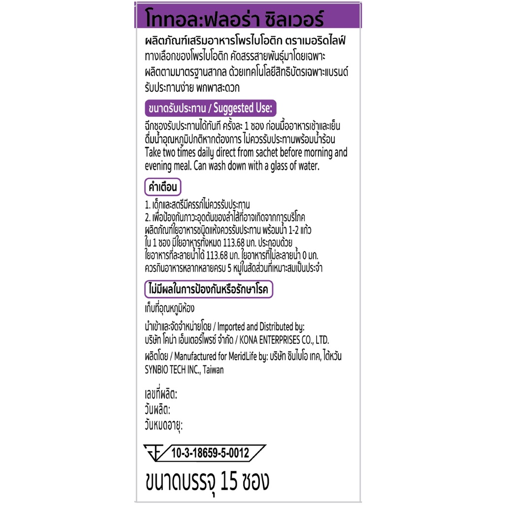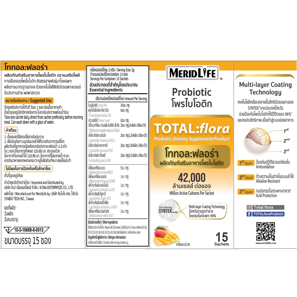 (หมดอายุ 10/2026) สุดคุ้ม! TOTAL:flora Probiotic MeridLife โททอล:ฟลอร่า โพรไบโอติก เมอริดไลฟ์ ท้องผูก ภูมิแพ้